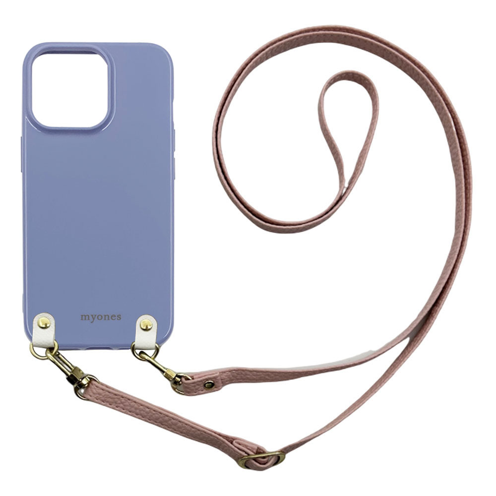 iPhone14 Pro Max アイフォン14プロマックス スマホケース(くすみブルー/サクラ)ソフトケース ストラップ 肩掛け 首かけ