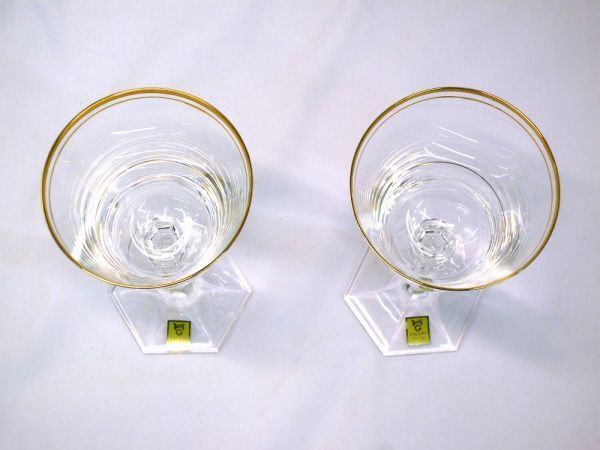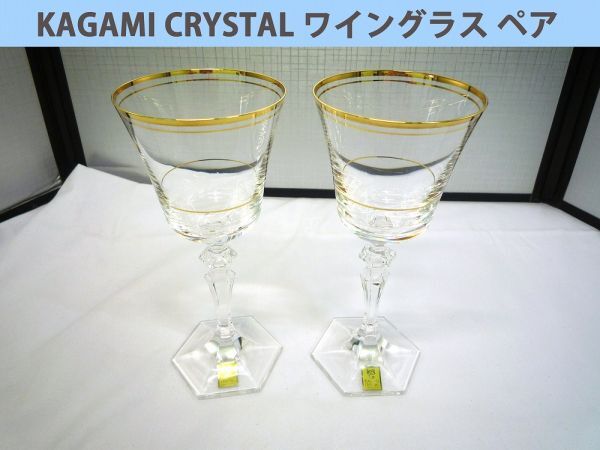20185【中古品】 KAGAMI CRYSTAL カガミクリスタル ワイングラス ペア 金彩 箱なし 説明書なし 下の部分に写真に写らないような小傷有り | ||