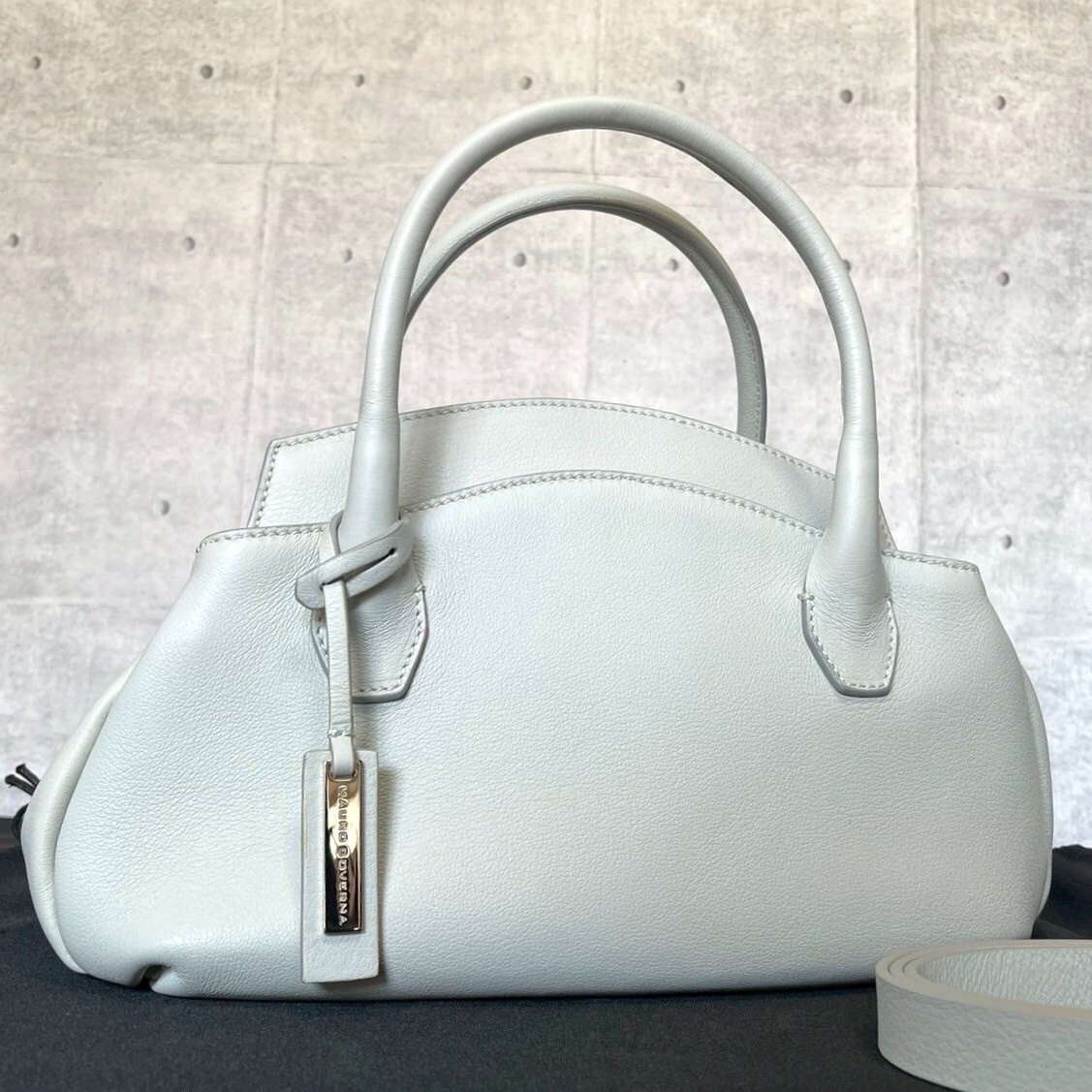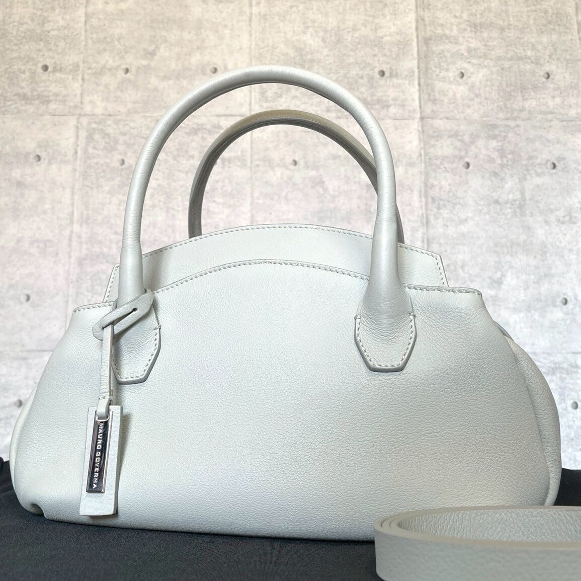 未使用級 MAURO GOVERNA マウロゴヴェルナ マウロゴベルナ レザー ライトグレー シルバー金具 ハンドバッグ トート