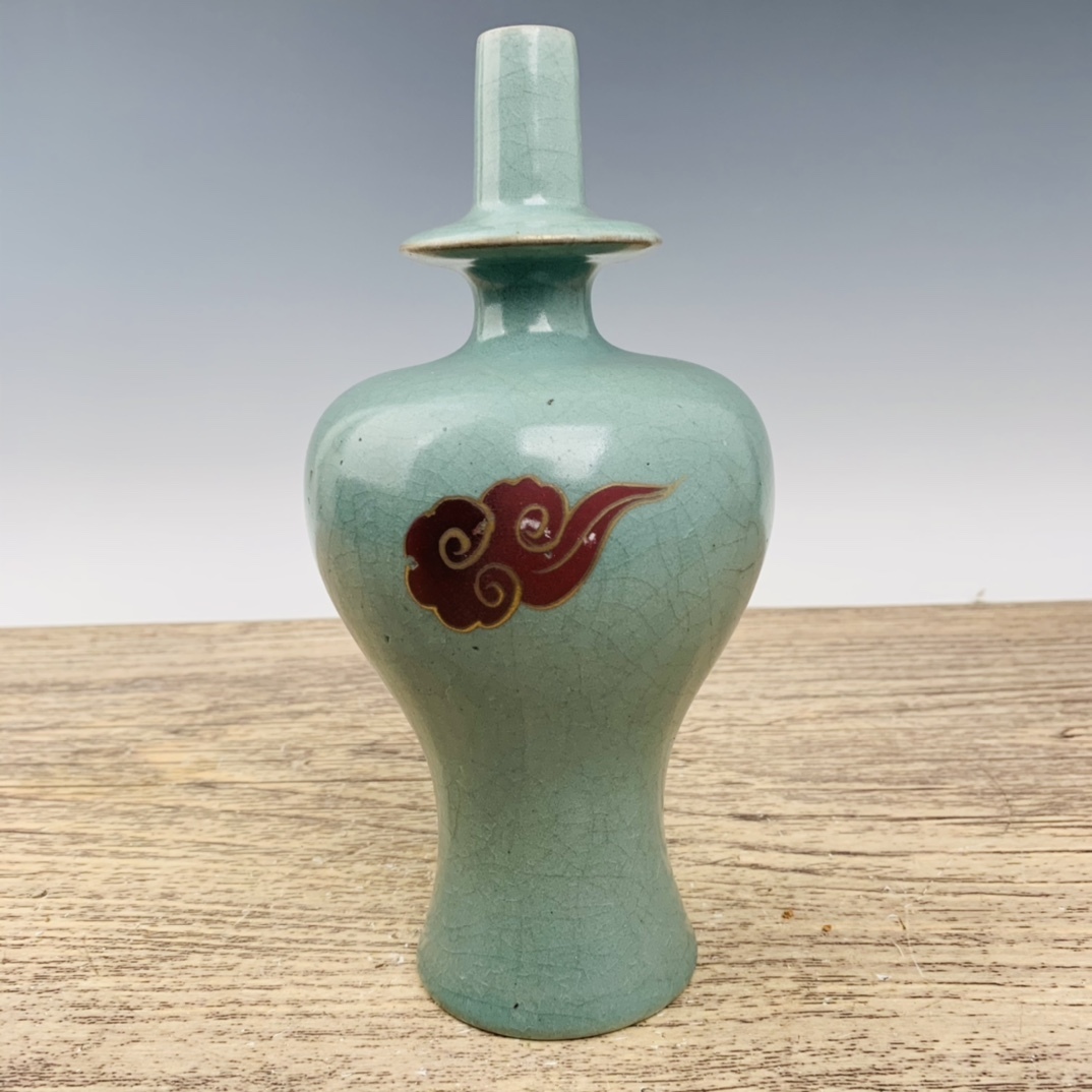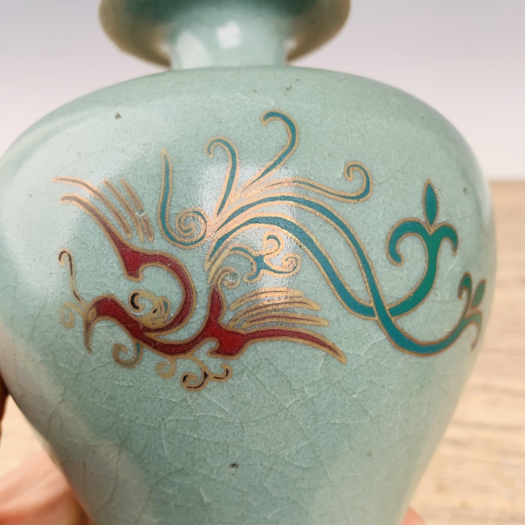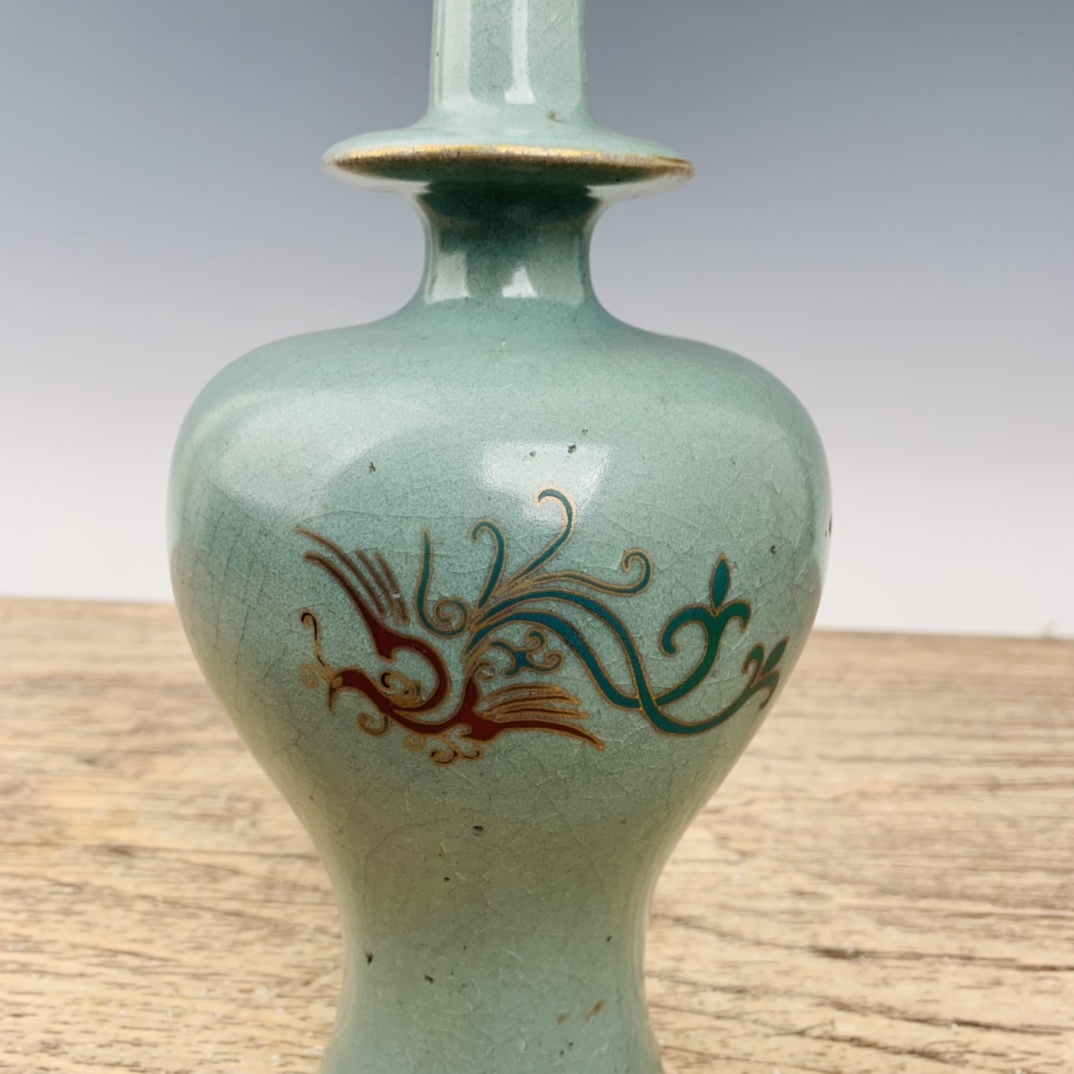 秘藏 宋時代 時代物 汝窯 蒔絵花瓶唐物 陶磁器 共箱付き 古賞物 置物 中国美術 高さ24 cm、直径12 cm 古物保証 ly8.24