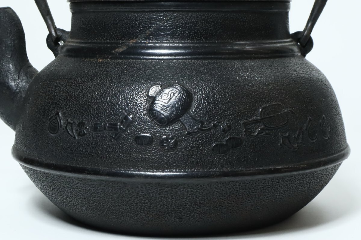 | ・山川堂 宝尽し文 鉄瓶 /鉄器 茶道具 湯沸かし | ||||||||||