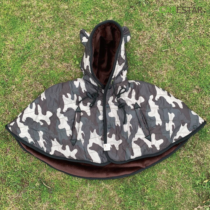 防寒 キッズケープ ミリタリー 風よけ 自転車 冬 暖かい ポンチョ マント ベビー 赤ちゃん 蓄熱 出産祝い かわいい ハグウェア CARESTAR