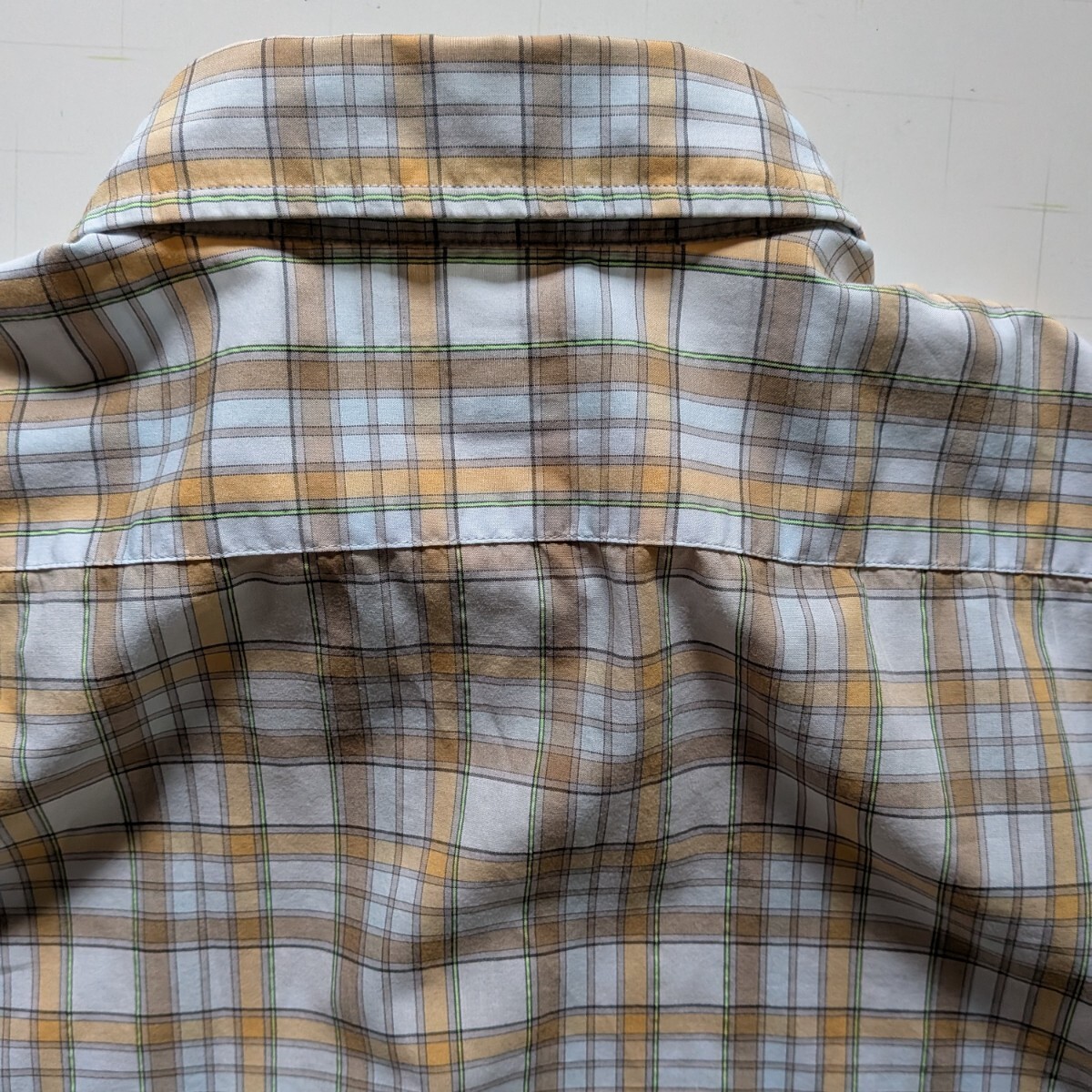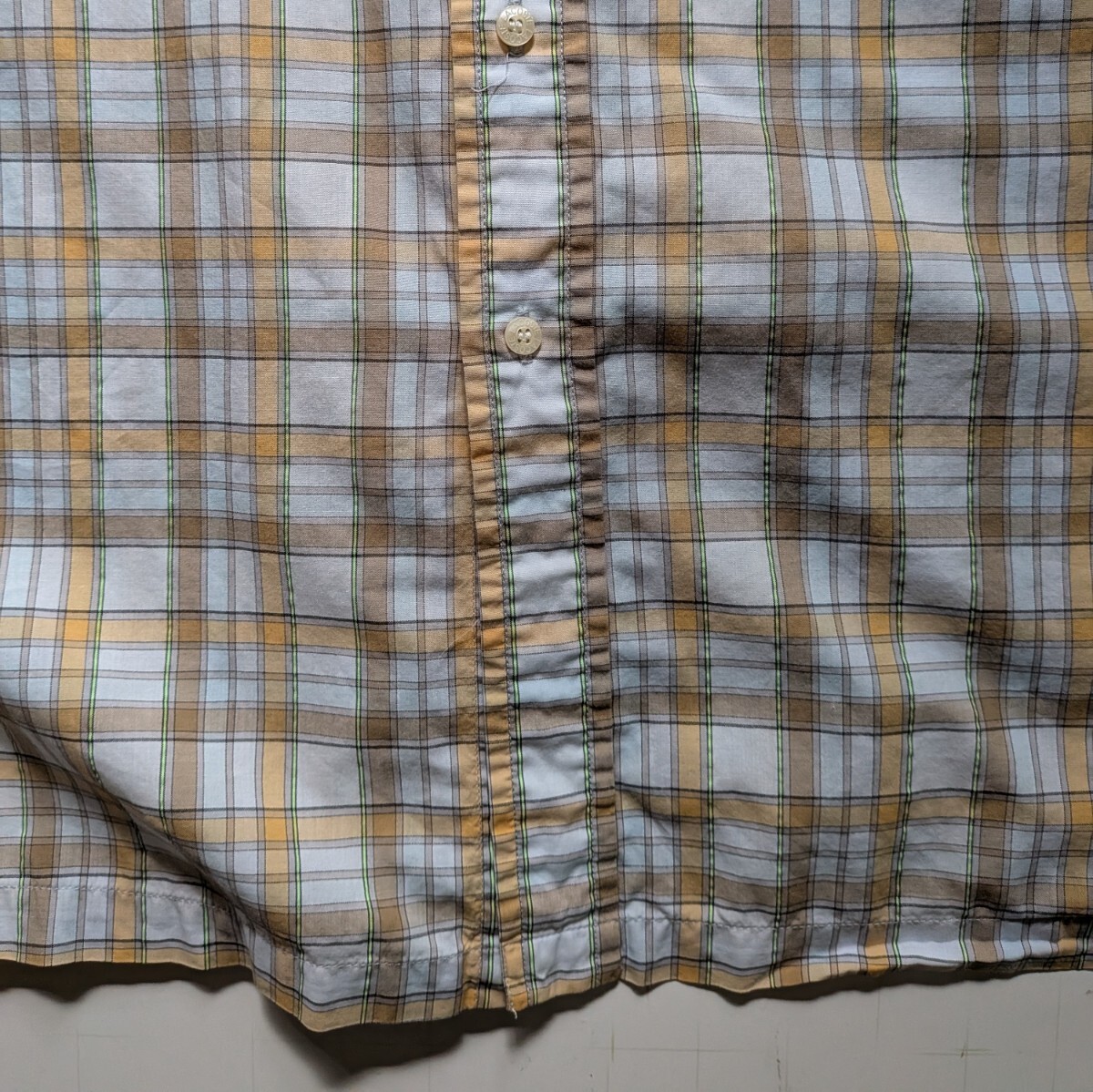 オフホワイトにチェック柄、コットン・ポリエステル素材、メンズサイズ5(L)、中国製