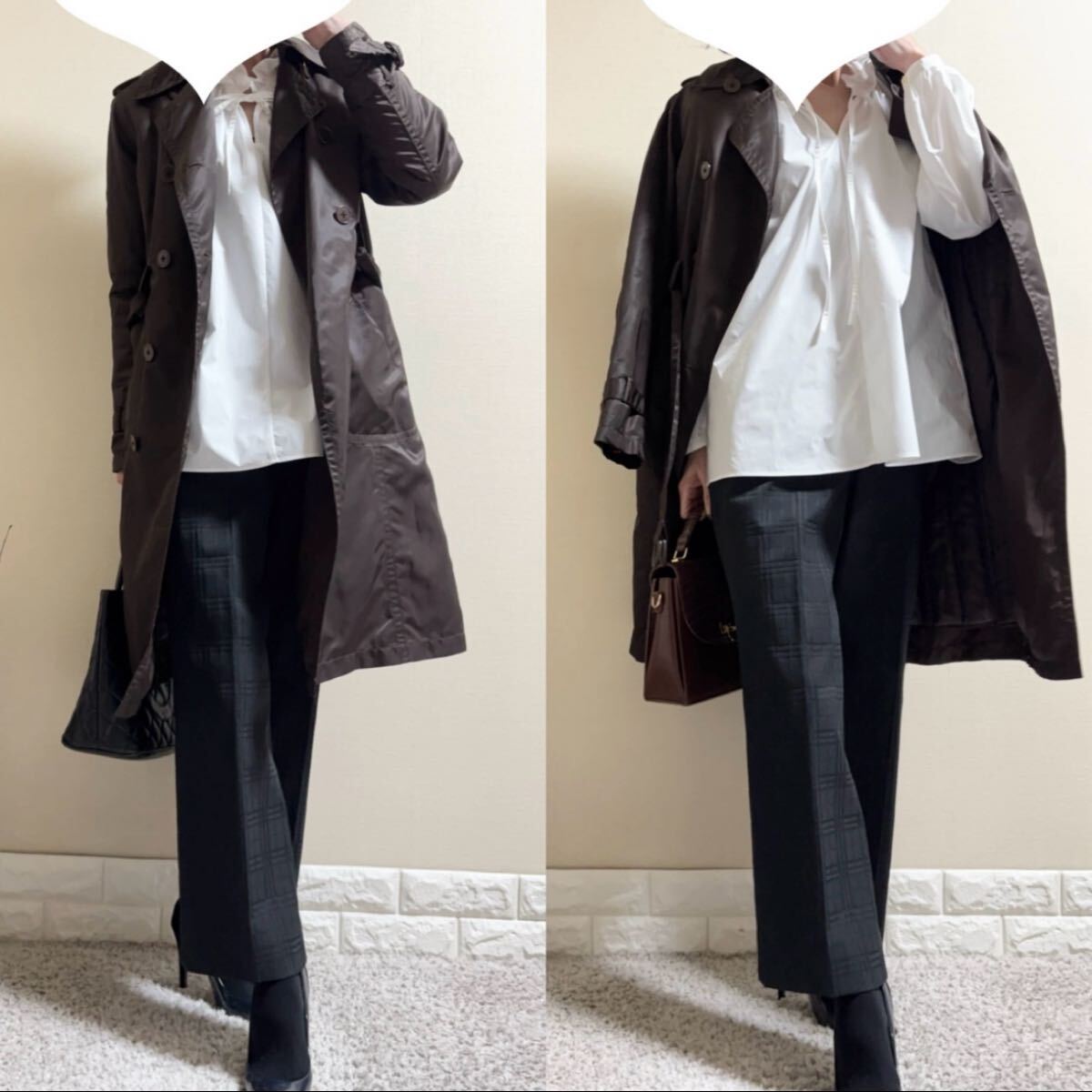 エレガントなブラウンカラーでパンツスタイルも女性らしい華やかな印象に♪