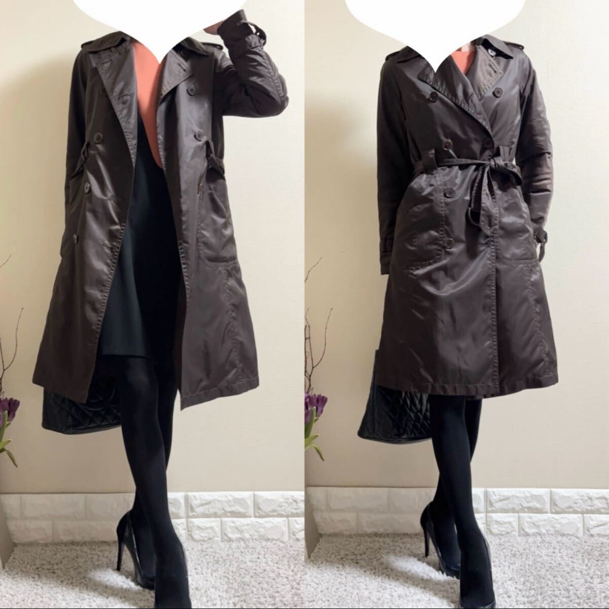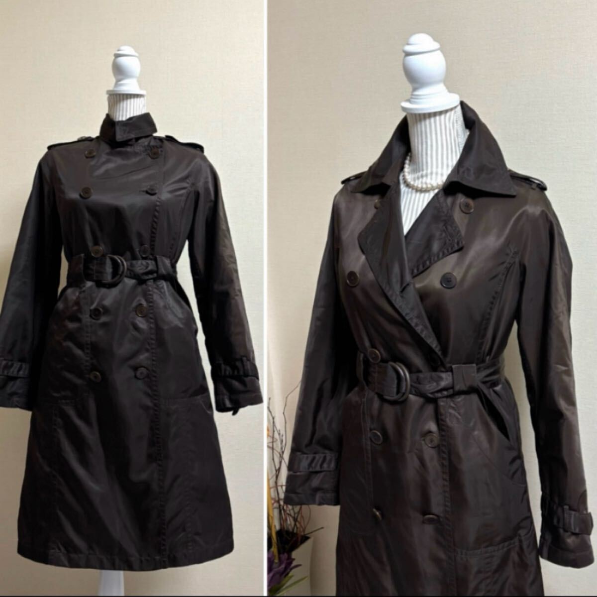 取り外し可能中綿ライナー付きで長い期間着用できるタフタコート トレンチコート アウターです