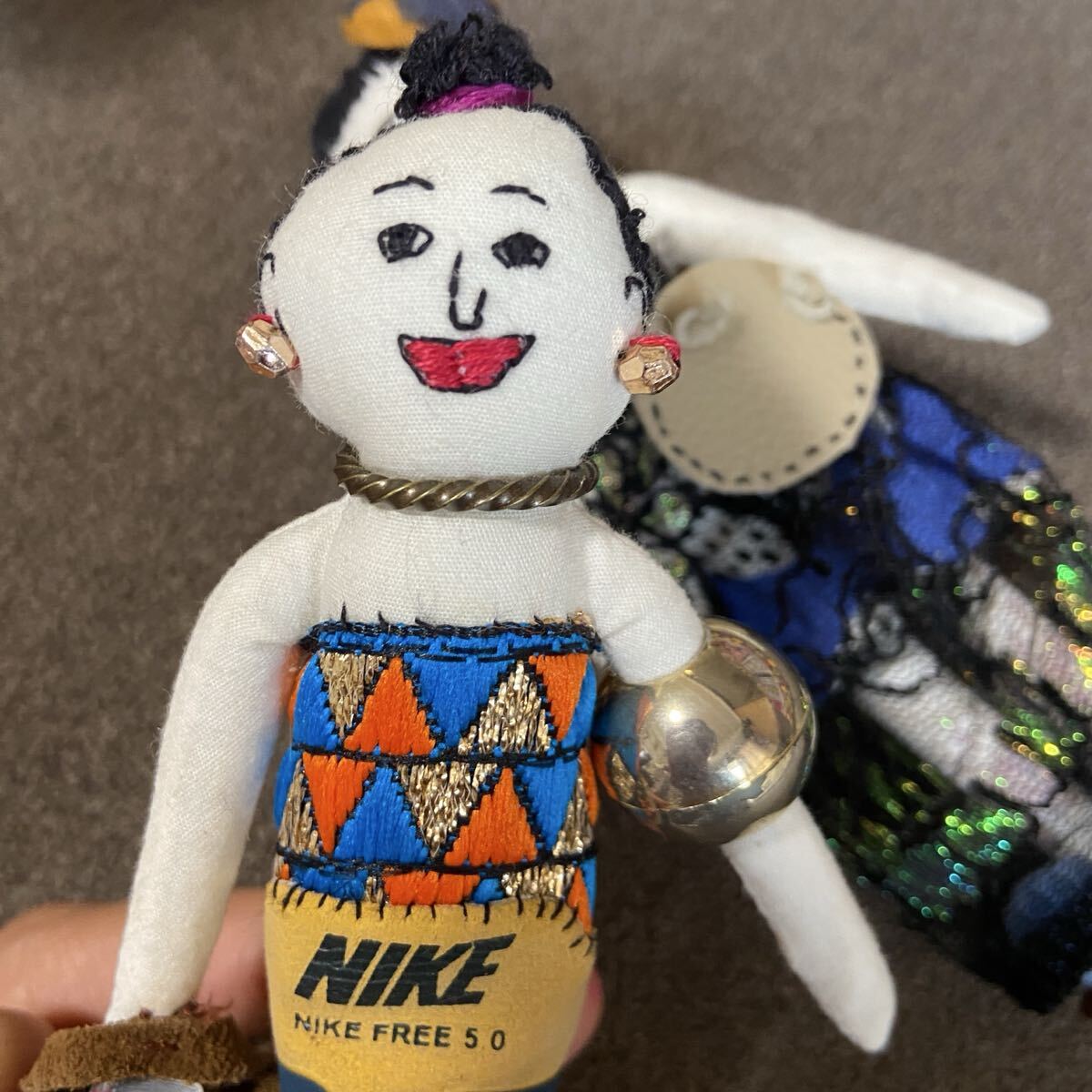 鮮やかな布やパーツを組み合わせて丁寧に制作された一点物で、