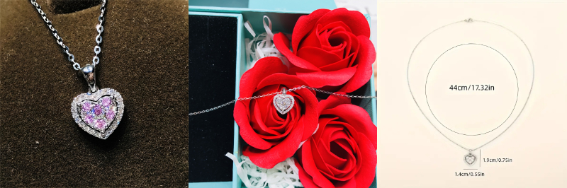 | 8311610699 1pc エレガントなハート型 合成ジルコニア ペンダント ネックレス 色: ピンク&シルバー |