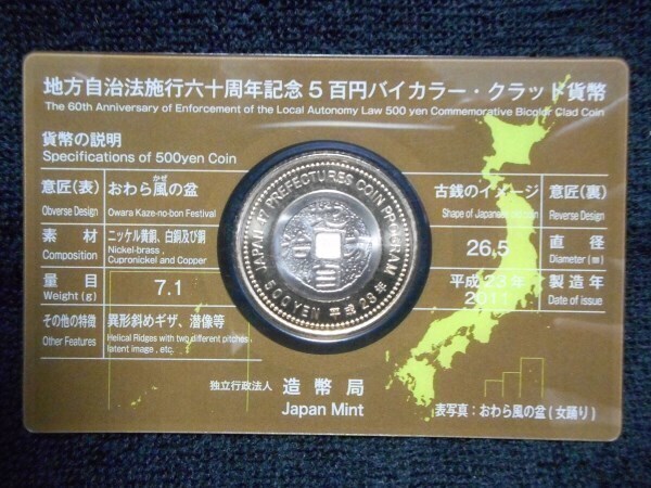 500円 富山県 地方自治法施行60周年 バイカラークラッド貨 カード型 未開封 写真をよくご確認の上、ご検討宜しくお願い致します。 ★★★★★他にもいろいろ出品しています★★★★★ | ||