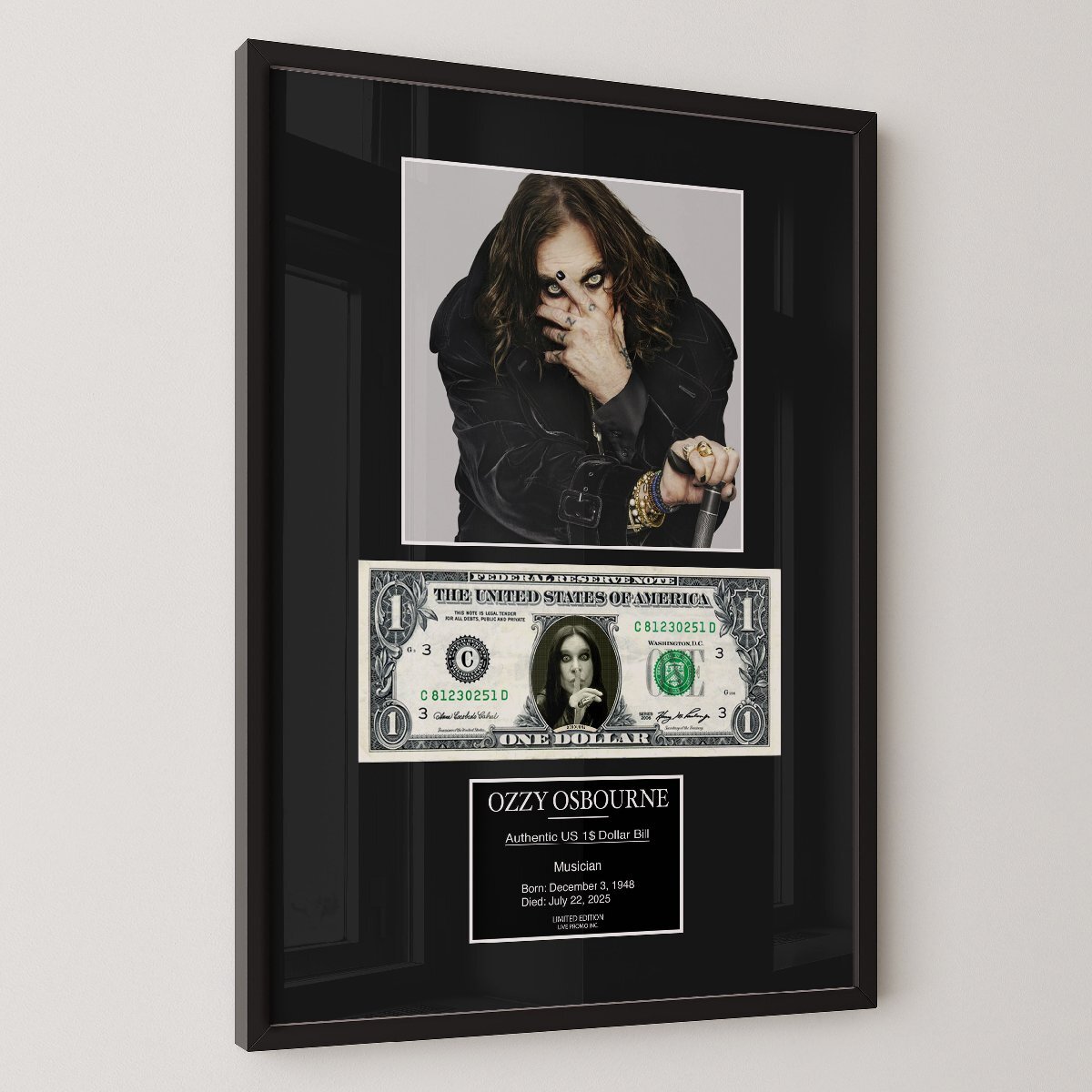 【 オジー・オズボーン / Ozzy Osbourne 】 の本物の1ドル札 ディスプレイ 証明書付き となっております。  ☆