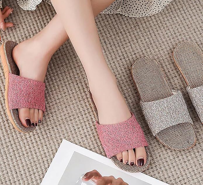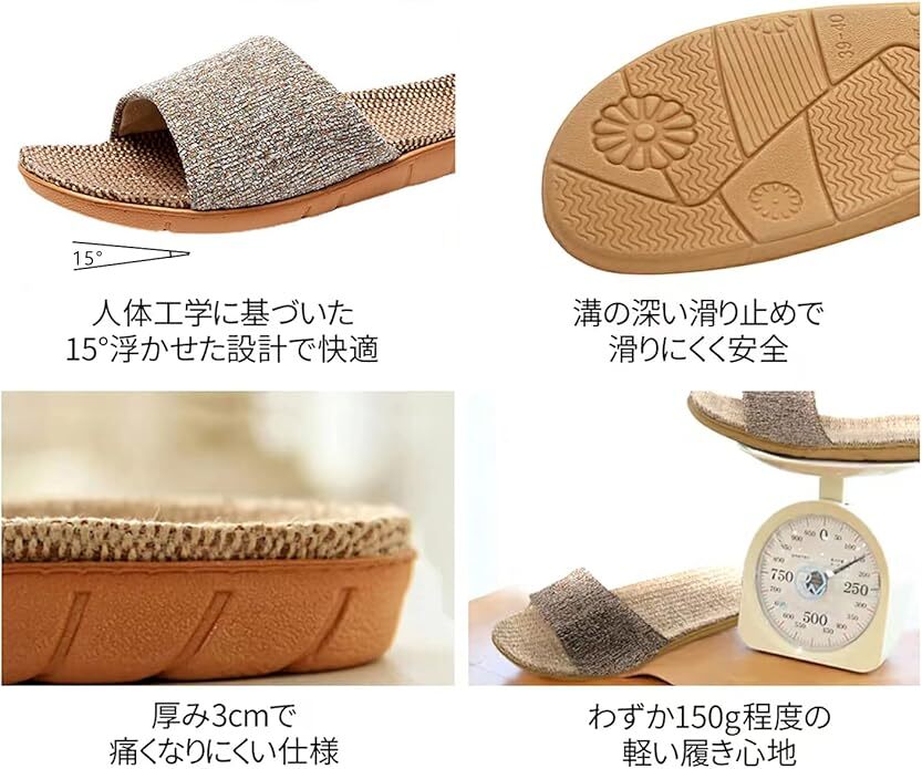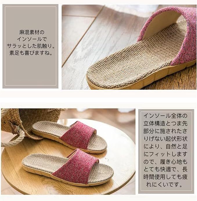 ホワイト 25.0~25.5 cm 気持ち良い素材 レディース メンズ ルームシューズ 夏春 スリッパ 室内履き 静音で軽量 麻 サンダル