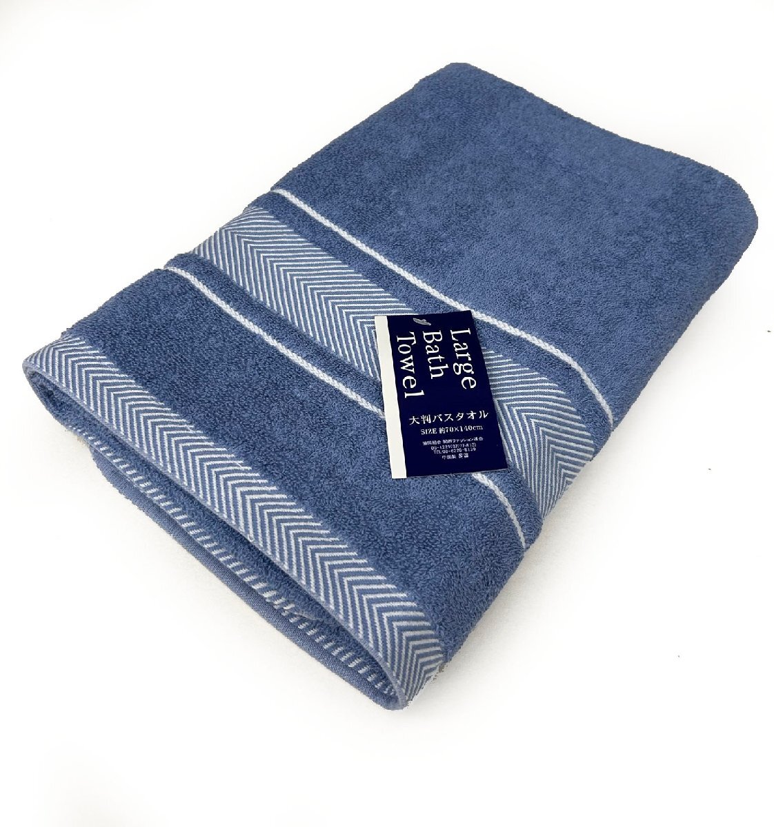 〇 大判バスタオル ヘリンボーンアクセント インディゴブルー