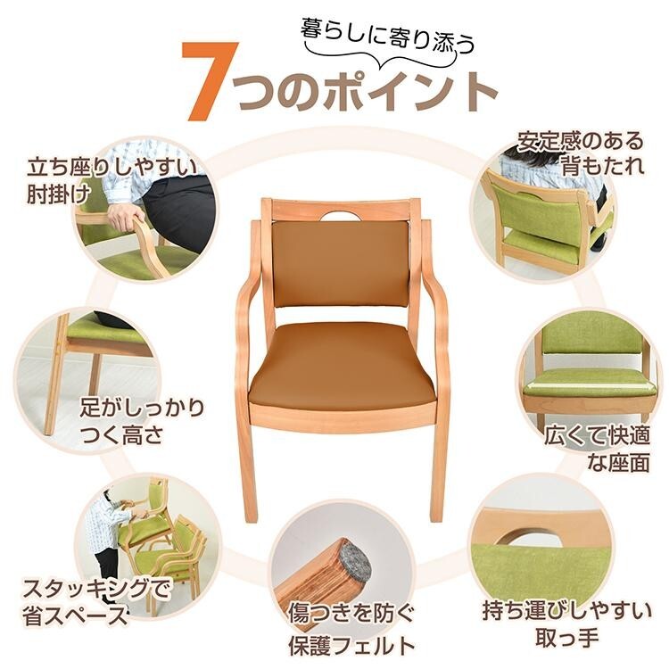 送料無料 ダイニングチェア 肘掛け椅子 北欧 1脚 介護椅子 肘付き 木製 レザー 介護 椅子 チェア イス リビングチェア 介護用手すり sg186