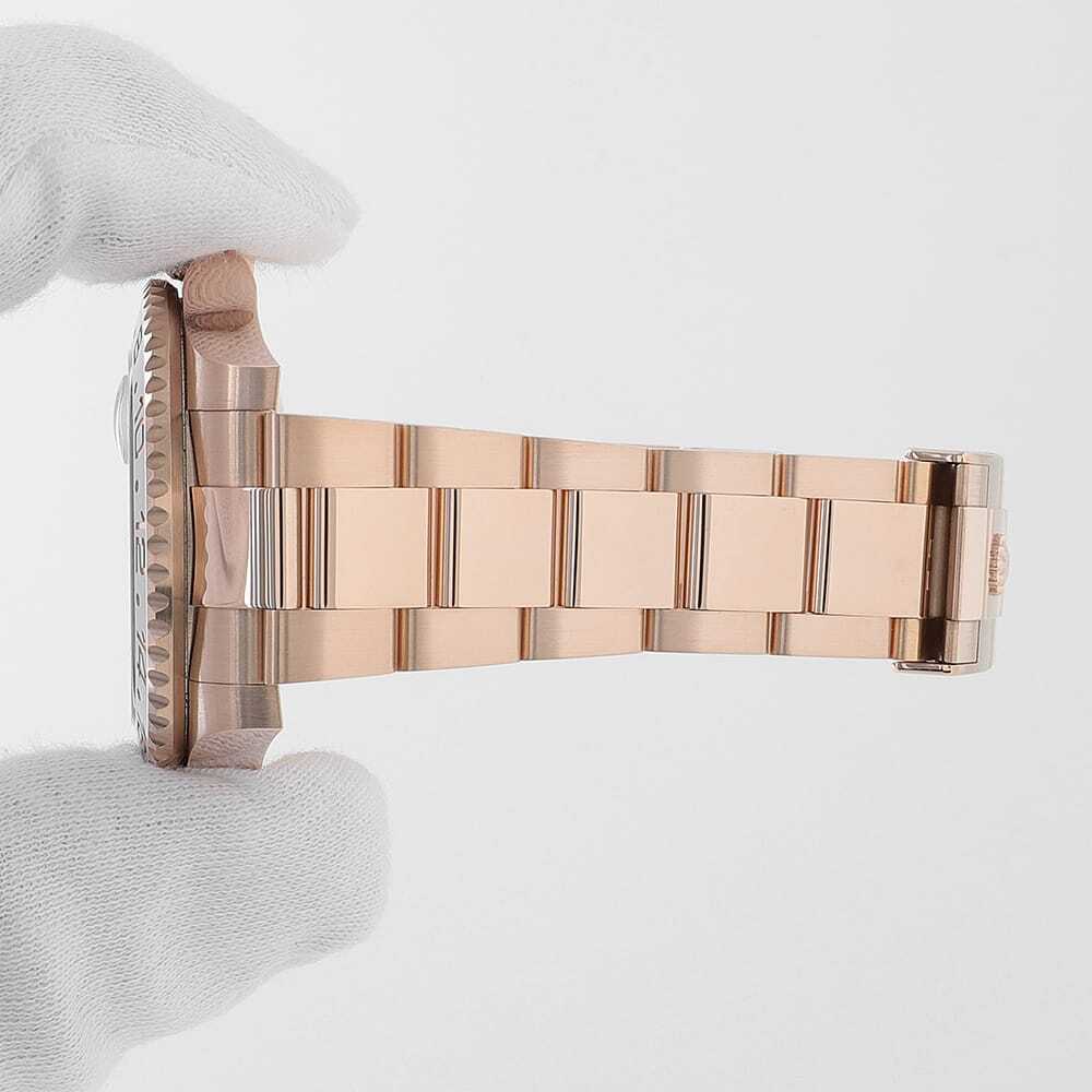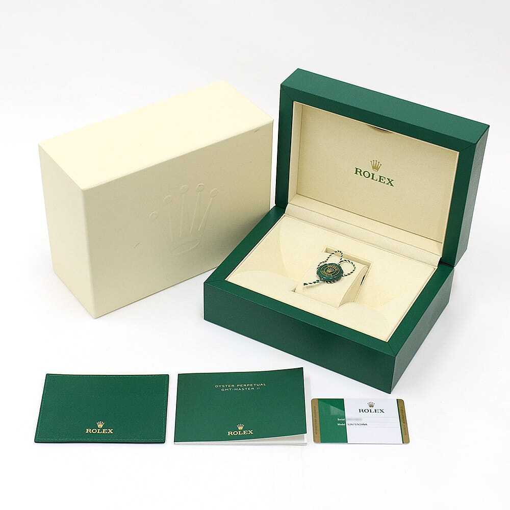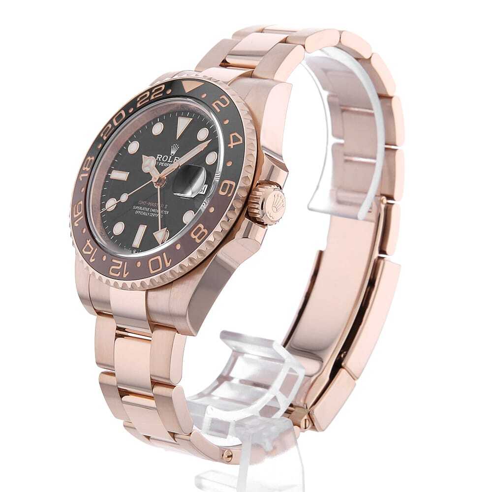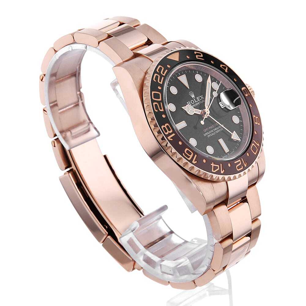 モデル情報 | バーゼルワールド2018にて発表されたGMTマスターIIが入荷しました。こちらは、エバーローズゴールド製ボディにブラック/ブラウンベゼルがとにかく美しい一本です。GMTマスターは過去様々な色合いのベゼルがラインナップされてきましたが、ブラウンはゴールドモデルにのみ使われる特別な色合い。独自技術のセラクロムによって、高級感が押し上げられることとなりました。外装の素晴らしさもさることながら、ムーブメントは新型Cal.3285を搭載したことにより、パワーリザーブ約70時間。高い信頼性・メンテナンス性と、最先端スペックを獲得しています。40mmケースの防水性は100m。 |