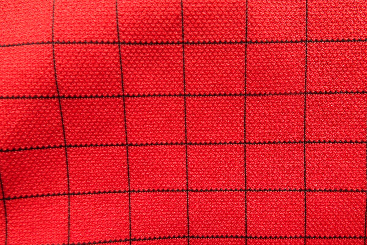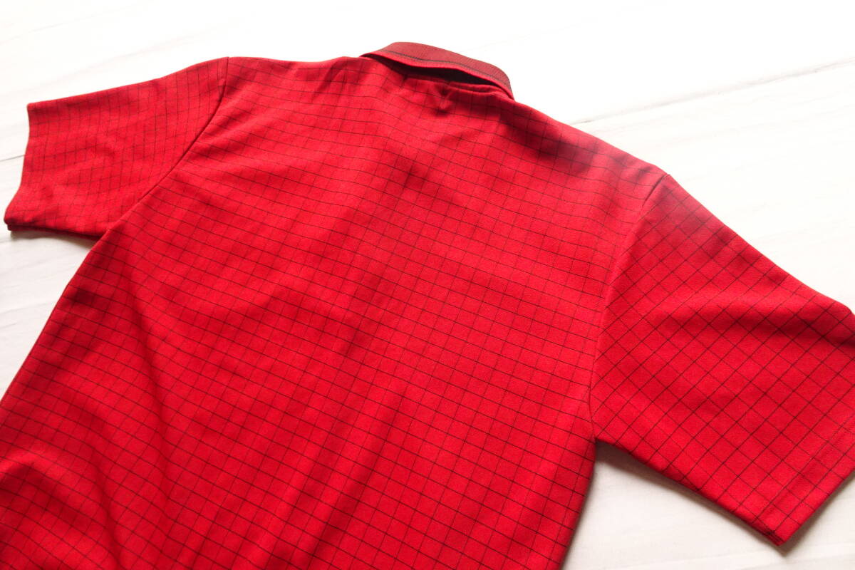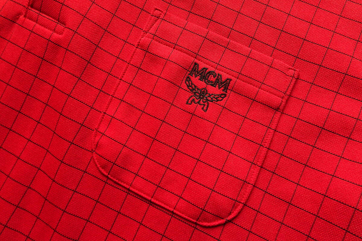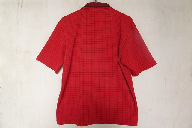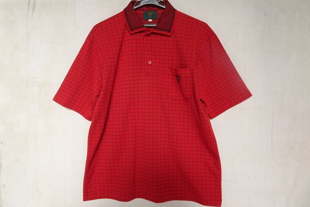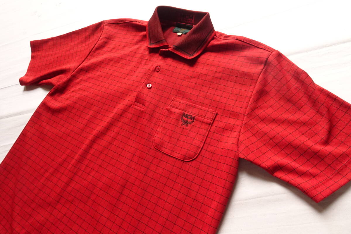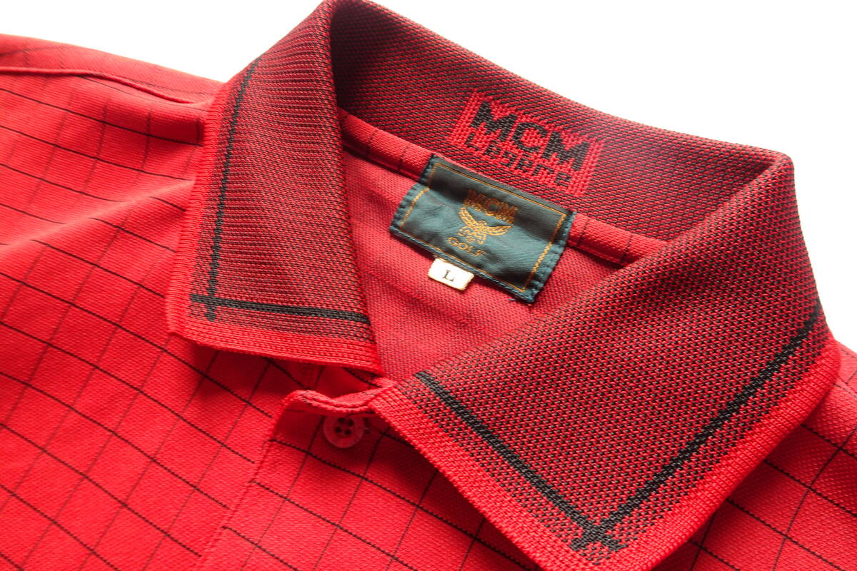 MCM GOLF/半袖ポロシャツ/ゴルフウェア/鹿の子素材/ウインドーペーンチェック柄/左胸ポケット/赤/レッド/Lサイズ(8/27R7)