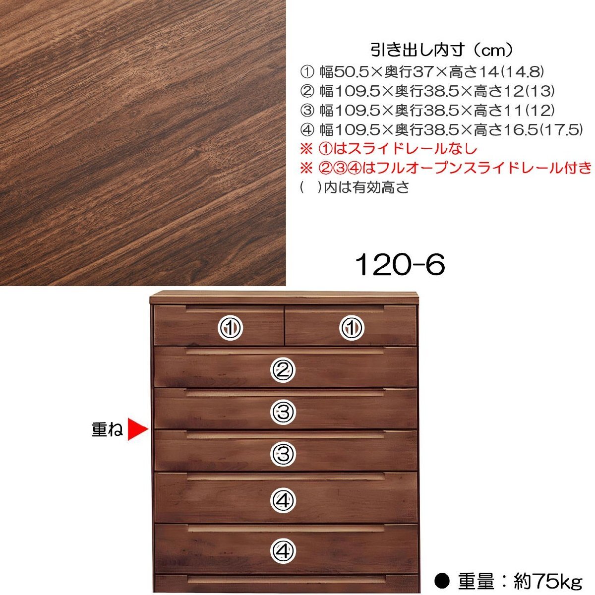 チェスト タンス たんす 木製 おしゃれ 衣装ケース 洋服タンス 6段 幅120cm 収納家具 完成品