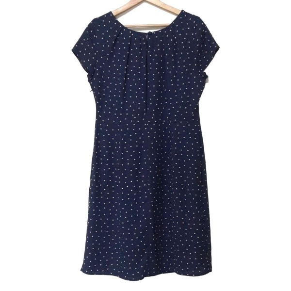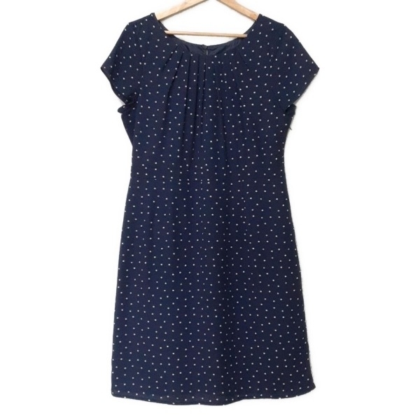 ローラアシュレイ LAURAASHLEY サイズUK 14 - ネイビー×白 レディース クルーネック/半袖/ひざ丈 美品 ワンピース