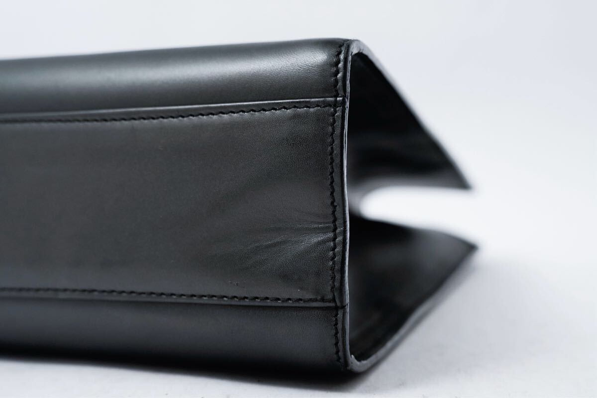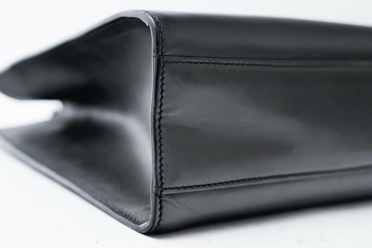 ブランドロゴは控えめにフロントのメタルプレートに刻印され、過剰な装飾を避けたミニマルな表情が際立ちます。取り外し可能なストラップを備え、ハンドバッグとしてもショルダーとしても使用可能。ビジネスからドレスシーンまで幅広く対応する存在感を放ちます。