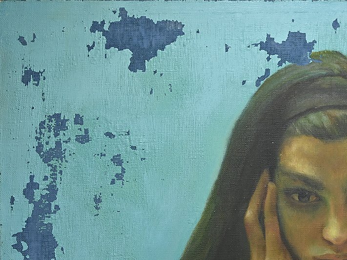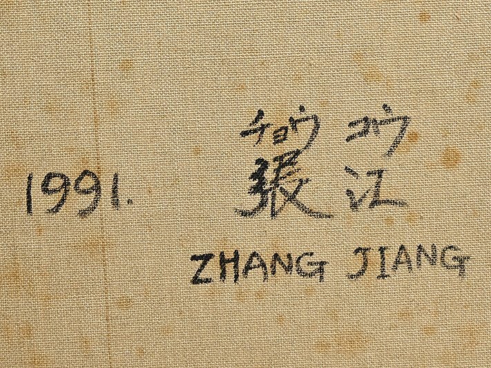 ZhangJiang(張江)の「思索にふける」油彩サイン入です。