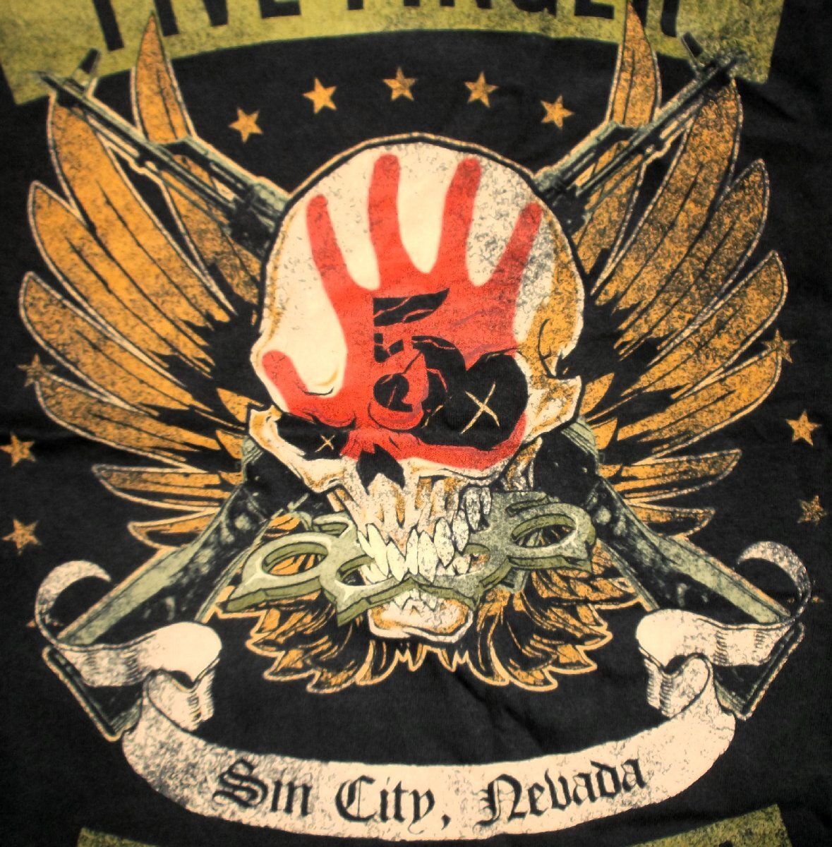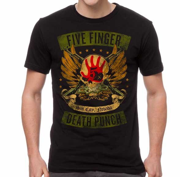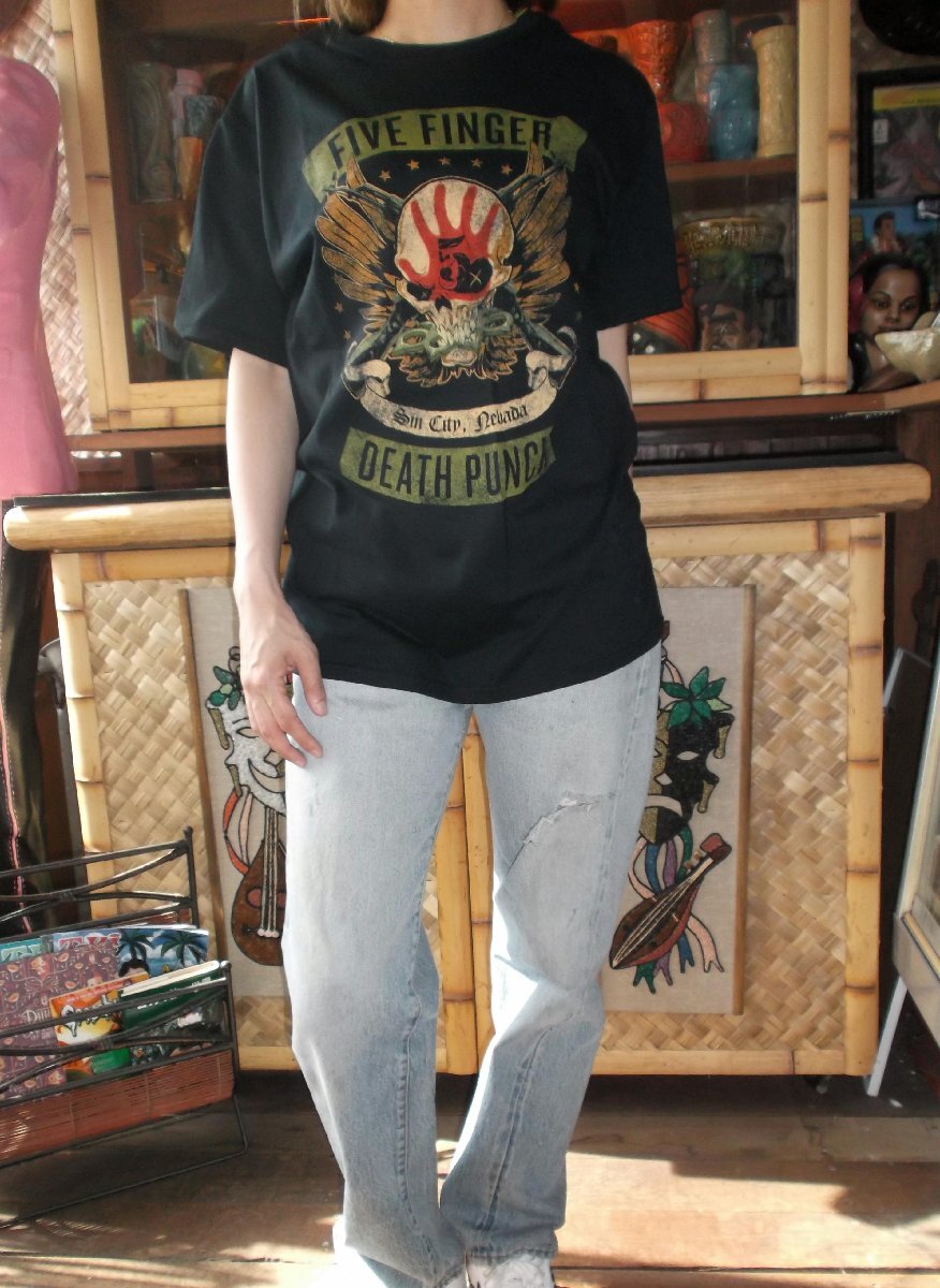 FIVE FINGER DEATH PUNCH, LOCKED & LOADED TEE /正規品 Rock on in this sweet Five Finger Death Punch t-shirt! Sin City, Nevada Banner Under Knucklehead Art & Logo Each shirt features the Locked and Loaded design on a men's standard fit, 100% cotton t-shirt. Black. 2005年結成、EUの香りも漂うUSニュー・メタルの精鋭=5FDP「FIVE FINGER DEATH PUNCH」のTシャツ「LOCKED & LOADED TEE」です! メロディアスなヘヴィメタル・サウンドを特徴として米国を中心に高い人気を誇り、瞬く間にへヴィ・ロック界の重鎮と化したFFDP! バンドのマスコットとしてデビューアルバムより描かれているスカル・キャラクター「ナックルヘッド」をバイカー風味に落とし込んだグッドデザイン!! 新品・正規品 Lサイズ 175cm位の方~によいかと思われます。肩幅52cm、背中中心総丈75cm、身幅54cm モデル 161cm , Sサイズ着用 郵メール便送料¥250(代引き不可・紛失補償なし) ACE CAFE LONDON、LUCKY13、THRASHER、Sailor Jerry等~アメキャラ・企業ロゴ等ライセンスTシャツ、RATFINK関連品、バンドTシャツ等取り扱っております。 ** 他にも色々出品中です。 CWBT cwktw IWTS | |||||||