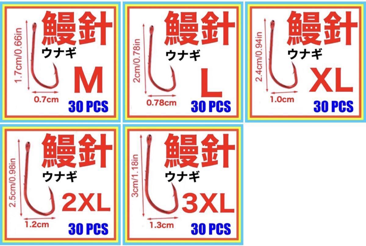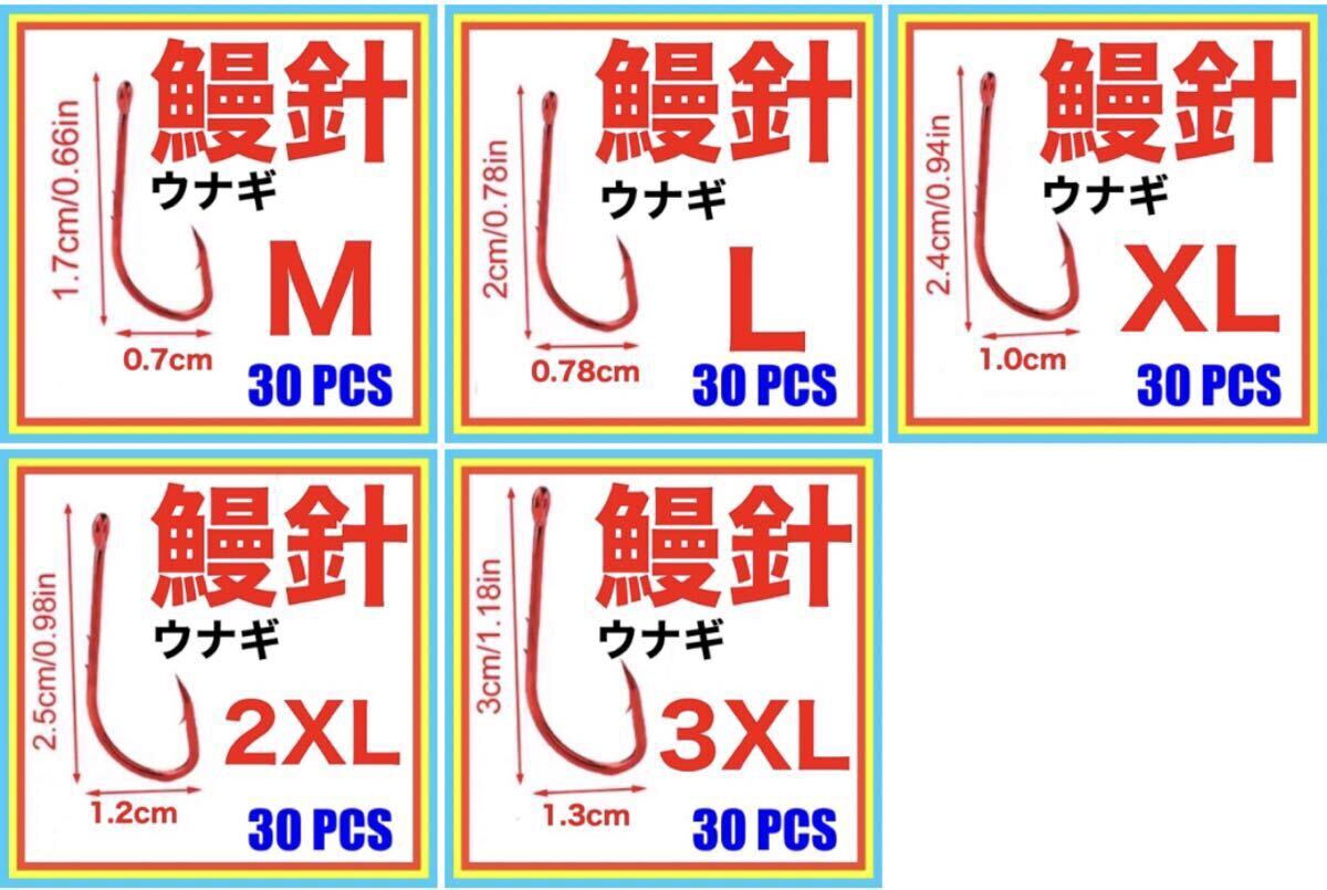 ドバミミズ を餌にしての釣りに最適な赤針。30本セット。送料無料。赤い鰻針は数種類出品。すべて形や大きさが異なります。