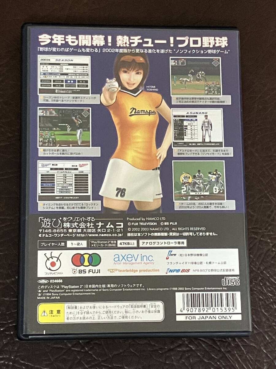 品名: 熱チュー!プロ野球 2003 メーカー名: ナムコ (現: バンダイナムコ ) 型番: SLPS 20273 対応機種: PS2 20GB/60GBモデルの後方互換性持ち初期型PS3 状態説明: 状態はそれなりかと思います。 商品説明: フジテレビ系列の 野球中継と、 ゲームとの融合という特徴を持つ、 野球ゲームです。 実況や解説にアナウンサーや 解説者がゲームにおいて起用されています。 リアル系野球ゲームであり、 当時としては美麗なグラフィックで、 実況など含めリアルな野球が楽しめるようになっています。 2004年度の選手が登場する上、特徴ある各種選手の モーションや得手不得手も リアルに再現されています。 興味ある方、いかがでしょうか。 →このソフトについての詳細はこのリンクを御参照ください。 |