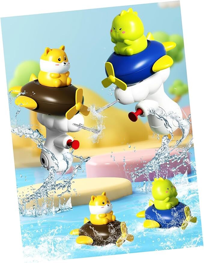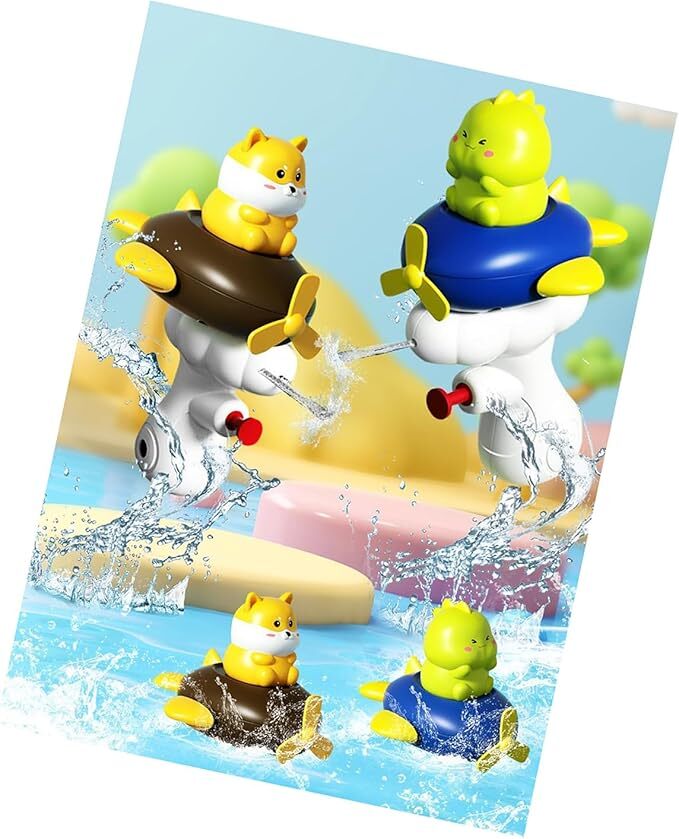 • [電池不要で安全に遊ぶことができます] 小動物の底部のねじ巻きで水面上を泳ぐことができ、製品の底部には排水孔があり、中に残った水から細菌が繁殖する心配はありません。掴みやすいデザインは小さな手に非常に適しており、小さな水鉄砲に水を入れ、トリガーを押すだけで簡単に撃つことができます。