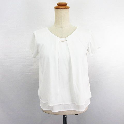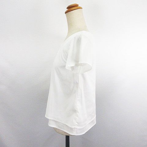 ミッシェルクラン a.v.v ブラウス シャツ 半袖 プルオーバー ラウンドネック レイヤード ストレッチ XS ホワイト ※EKM レディース