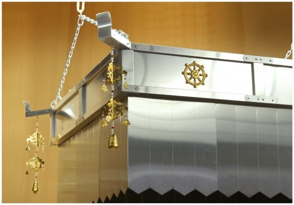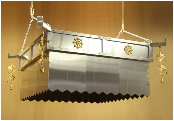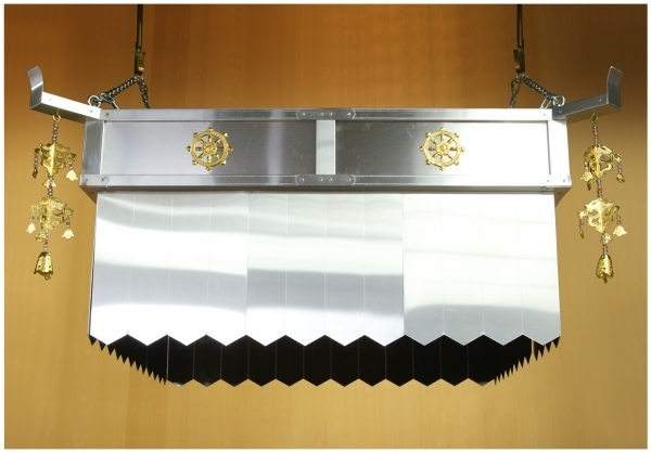 【送料無料】軽量型護摩天蓋 アルミ製 胴幅105cm(3尺5寸) 隅瓔珞付 輪宝紋 密教 護摩壇用 荘厳具 京都製