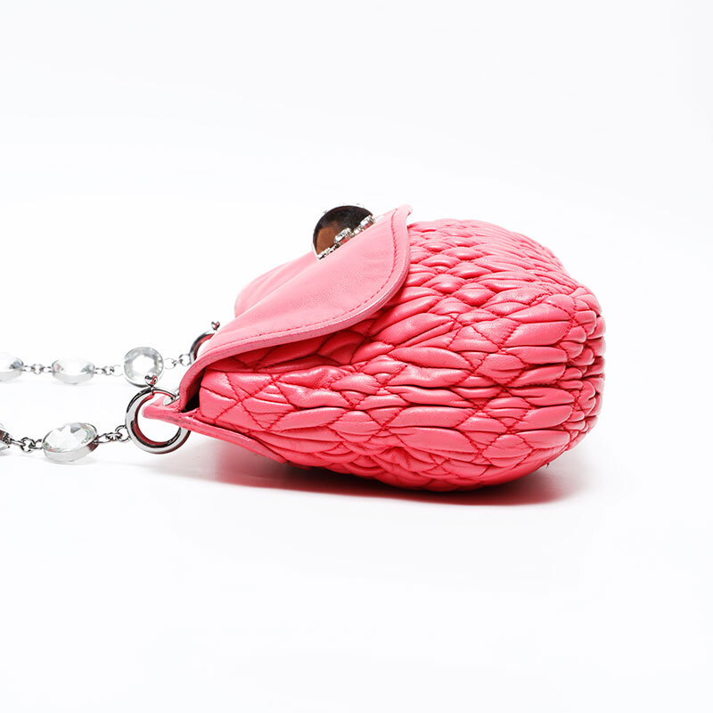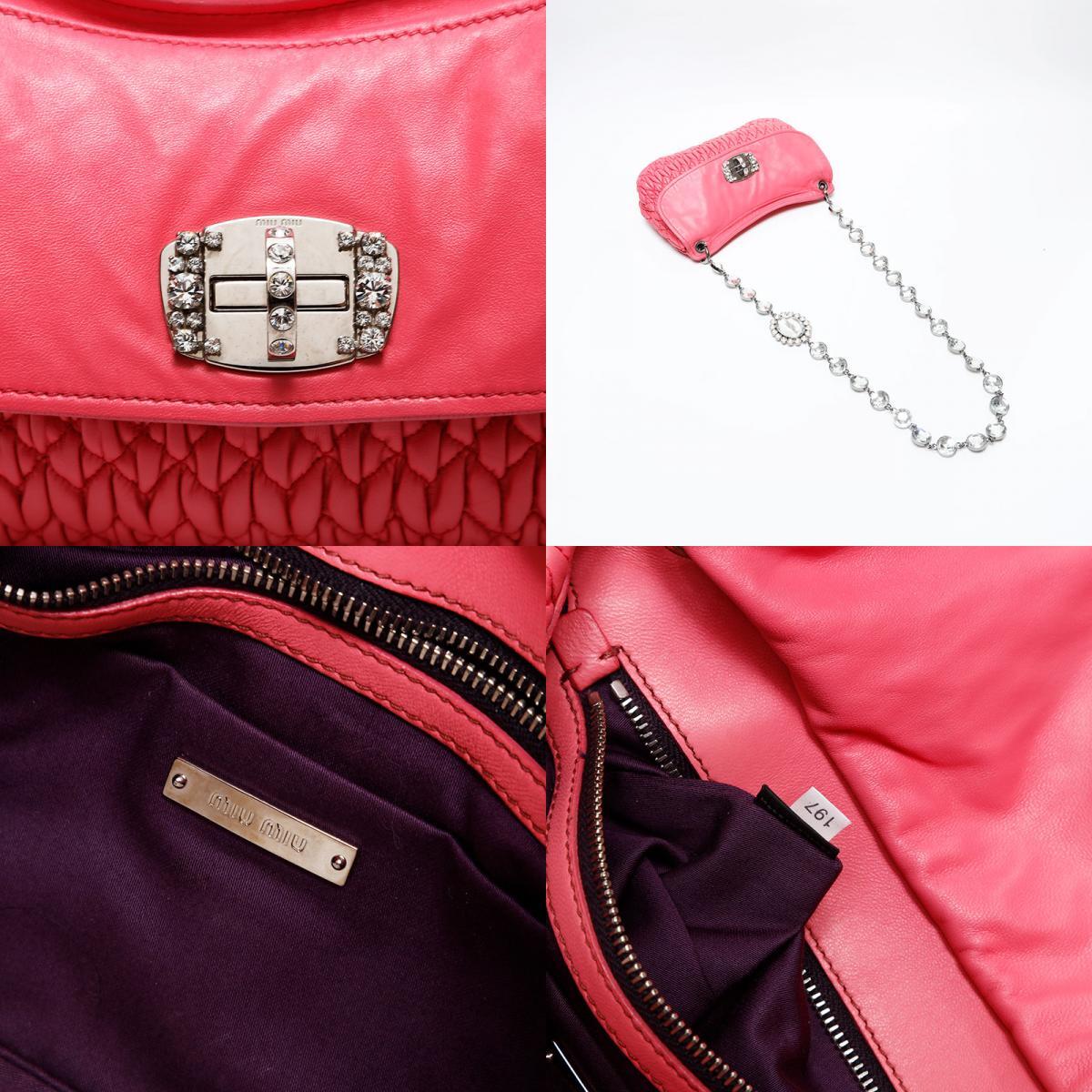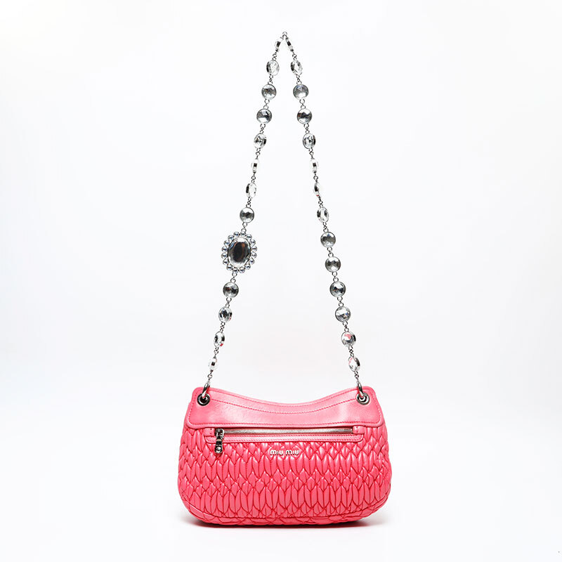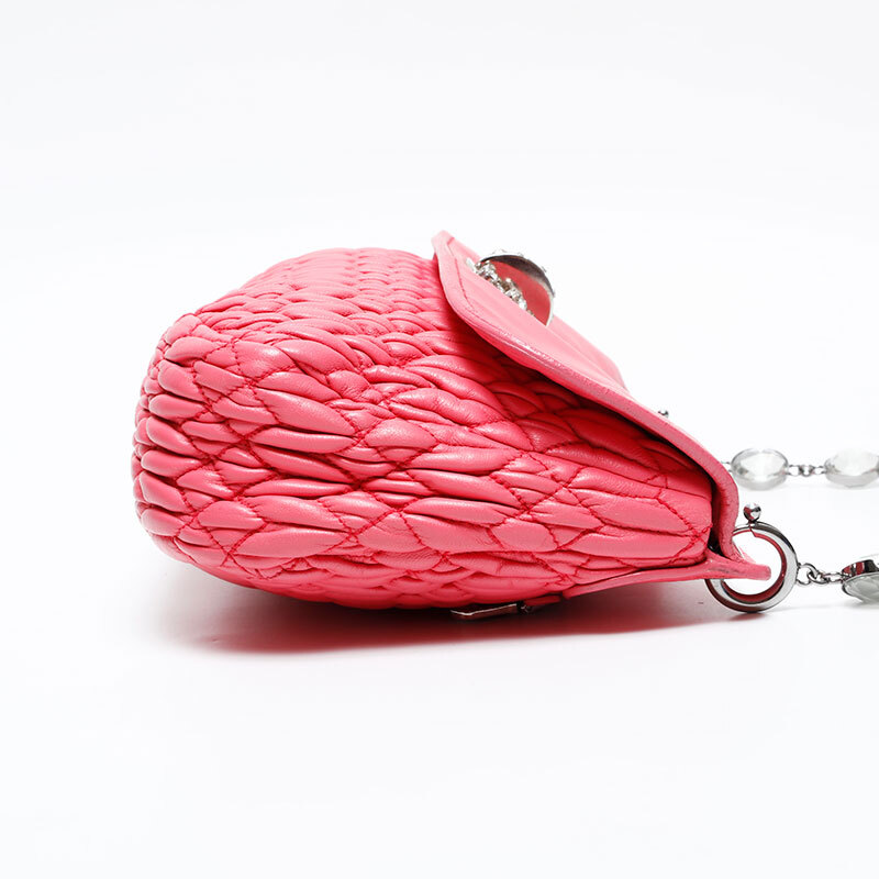 極美品 Miu Miu ナッパレザー マテラッセ クリスタル ショルダーバッグ ピンク