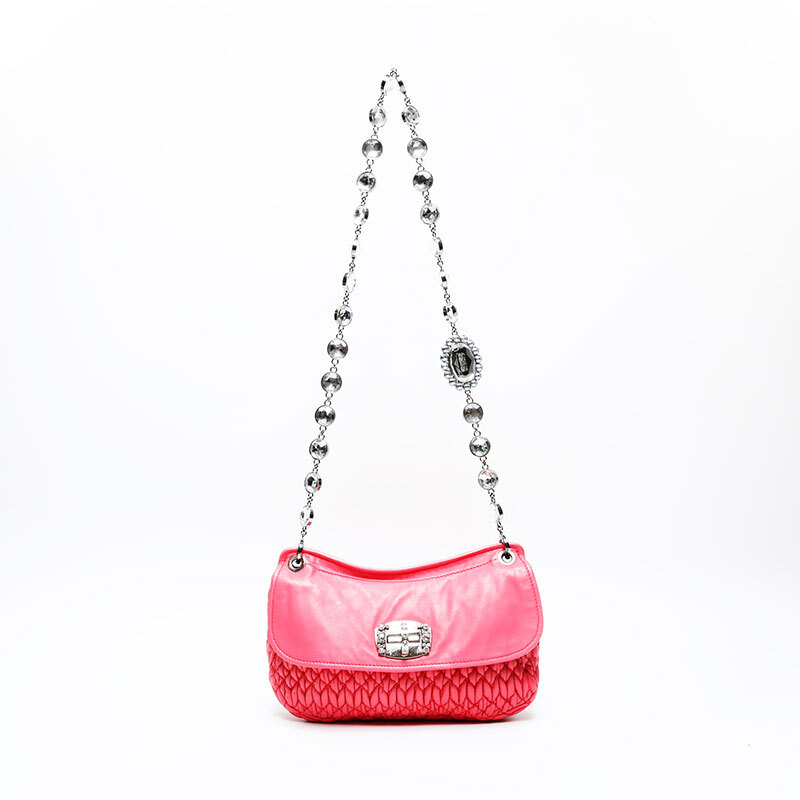 ミュウ ミュウ Miu Miu ショルダーバッグ ナッパレザー マテラッセ クリスタル ピンク