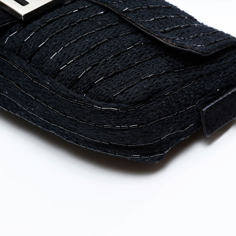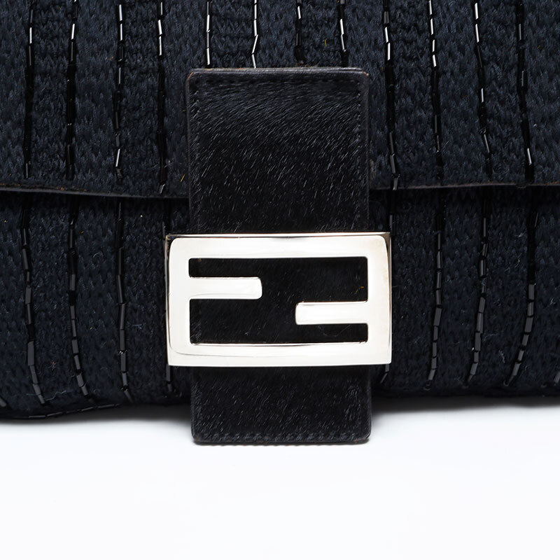 フェンディ FENDI ショルダーバッグ ハラコ マンマバケット ビーズ ブラック