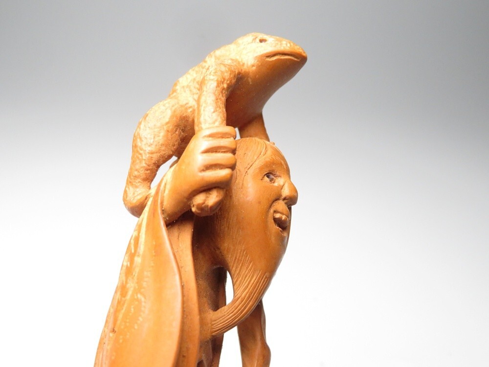 ●明治期 堤物 木製 蝦蟇仙人 根付になります。古い物ですが極力状態の良い作品を出品しておりますので是非ご覧ください。 【状態】 ●経年を考慮し状態はよいと思います。 【サイズ(約)】 ●14.8×3.8㎝ (素人寸法ですので、若干の誤差はお許し下さい) 【発送】 出張等により発送に一週間ほどお時間を頂戴する場合がございます。 【領収書】 領収書発行は致しておりません。 Yahoo!かんたん決済手続き完了時の確認画面をプリントアウトして領収書としてお使い下さい。 ※領収証として税務署に認められております。 ご了承のうえでのご参加をお願いいたします。以下の注意事項もご確認ください。 |