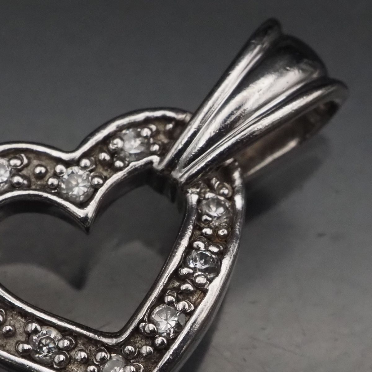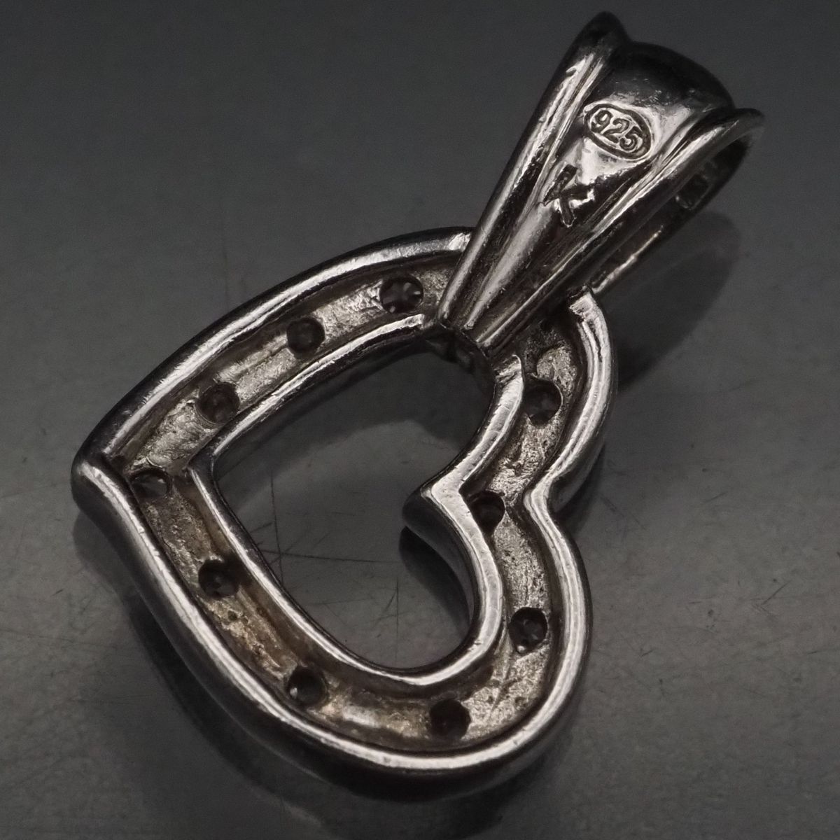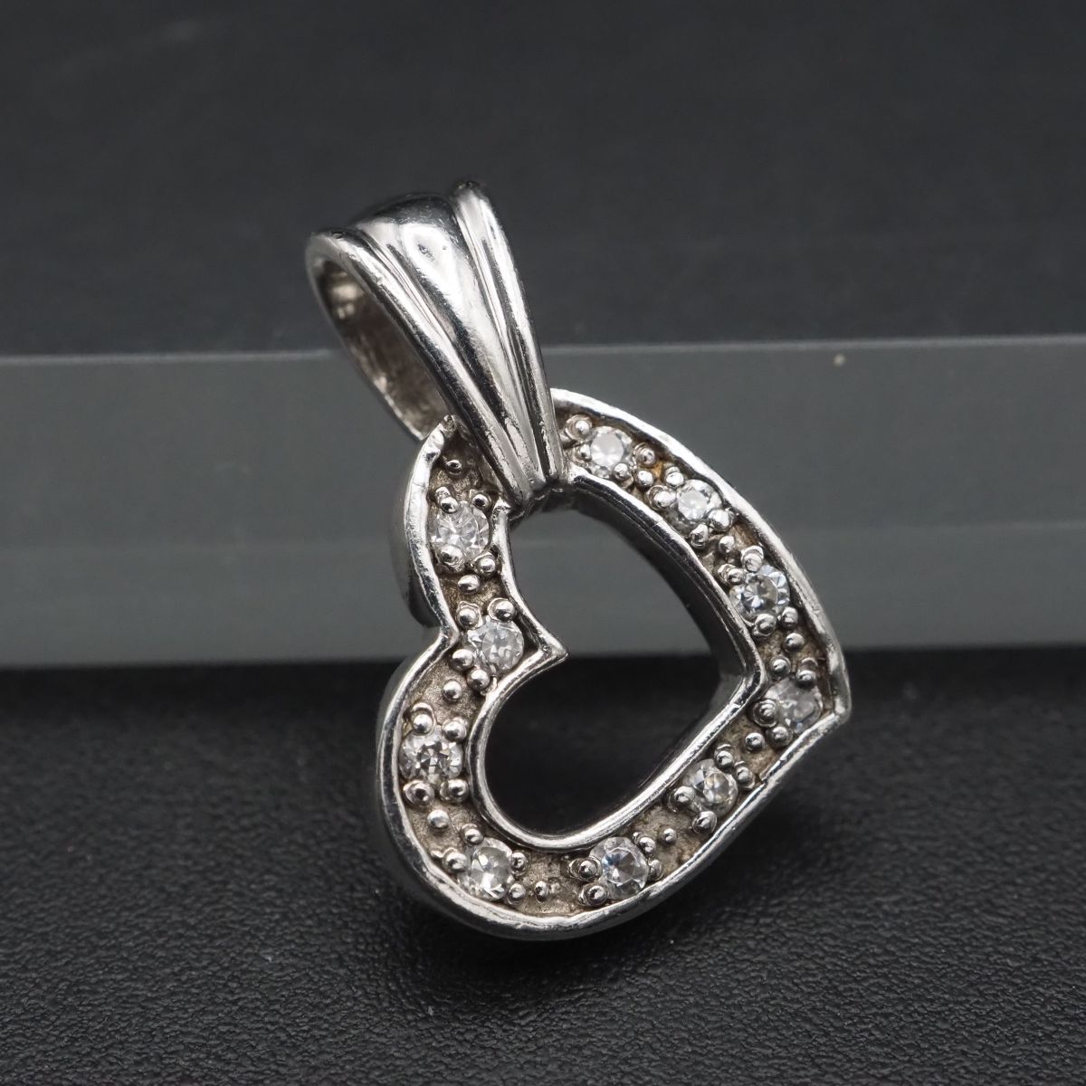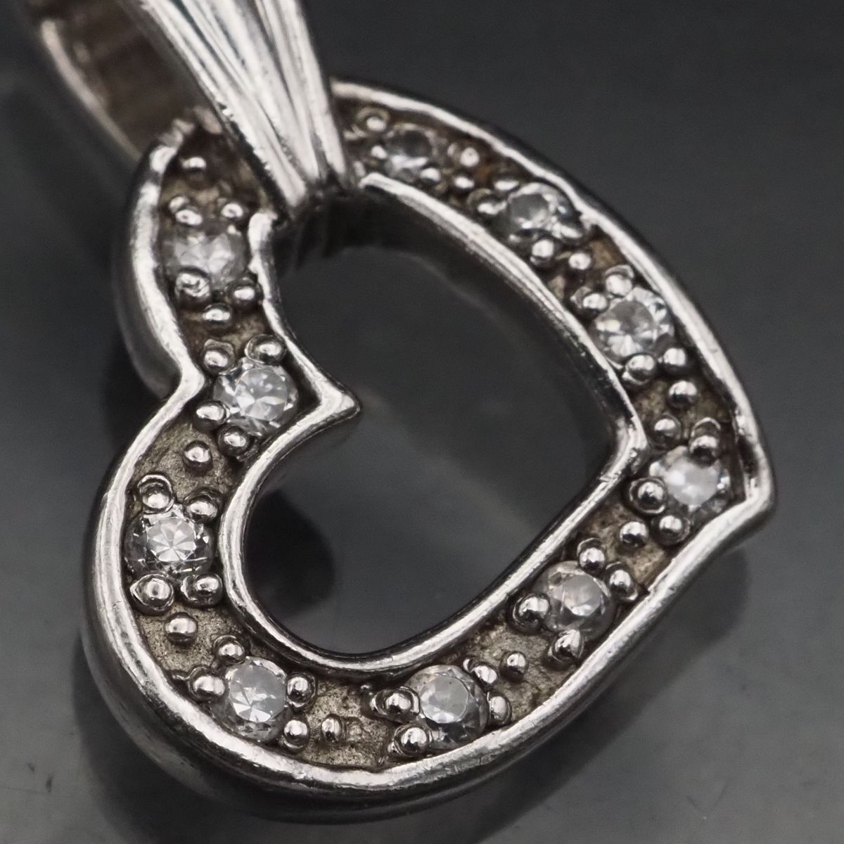 C196 ダイヤモンド風 925 K刻印 ペンダント トップ オープンハート デザイン シルバー チャーム ヘッド