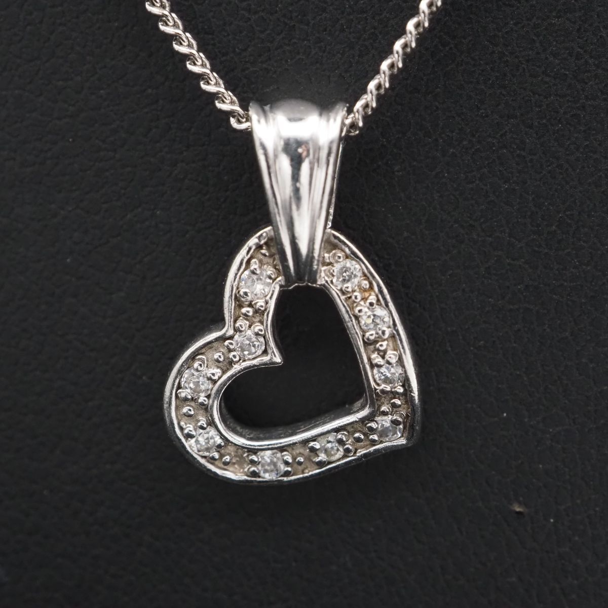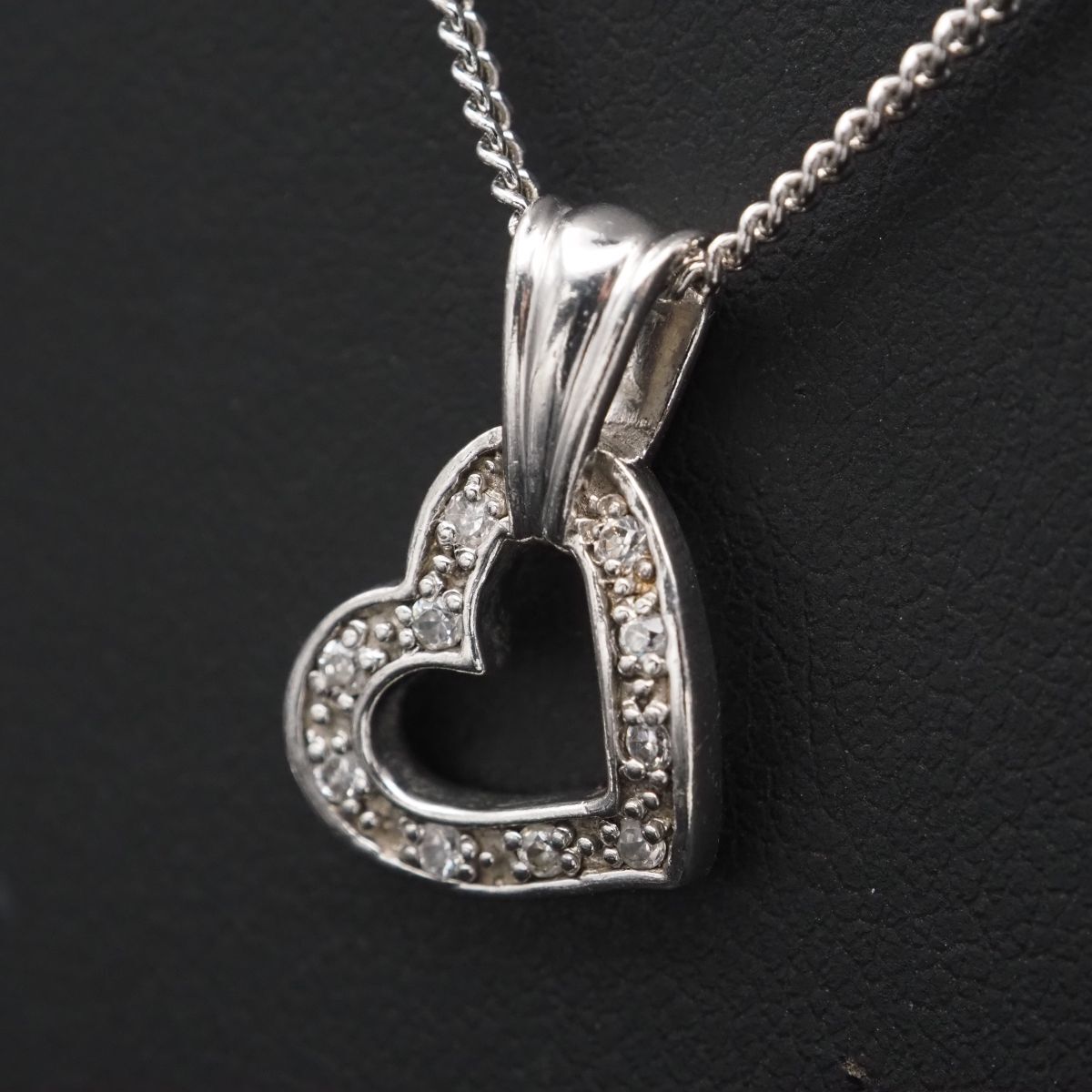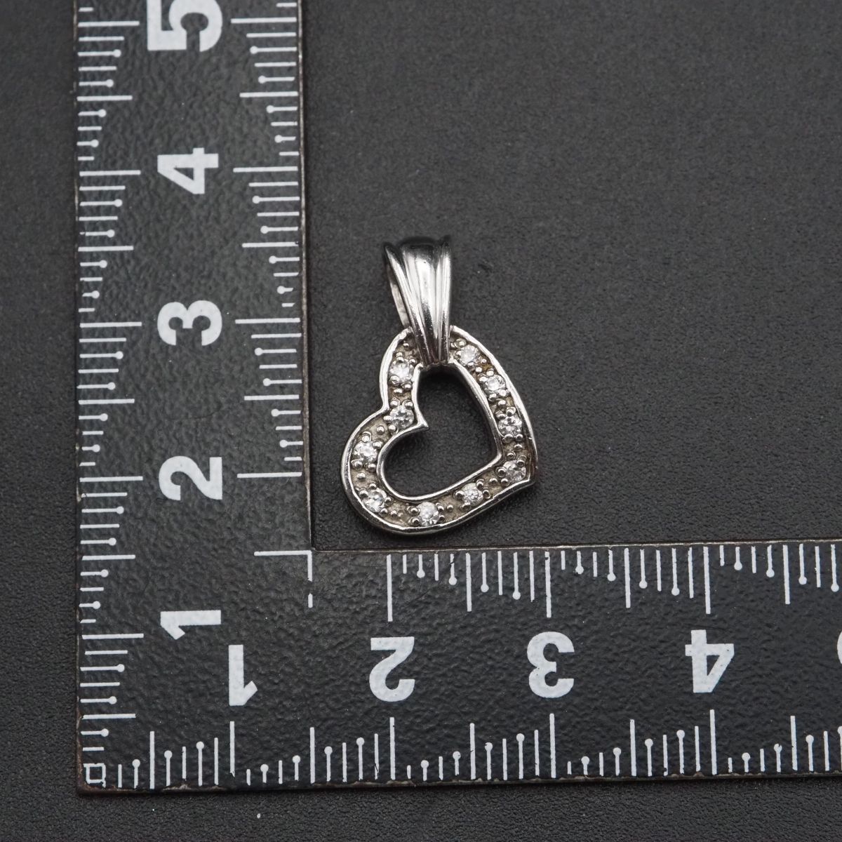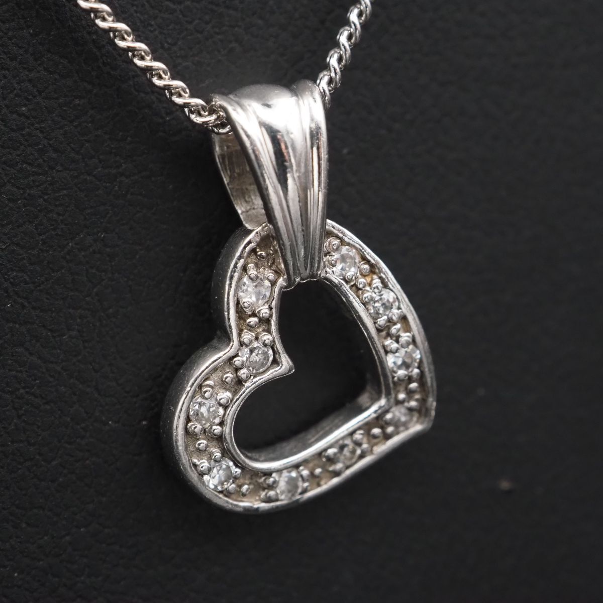 C196 ダイヤモンド風 925 K刻印 ペンダント トップ オープンハート デザイン シルバー チャーム ヘッド