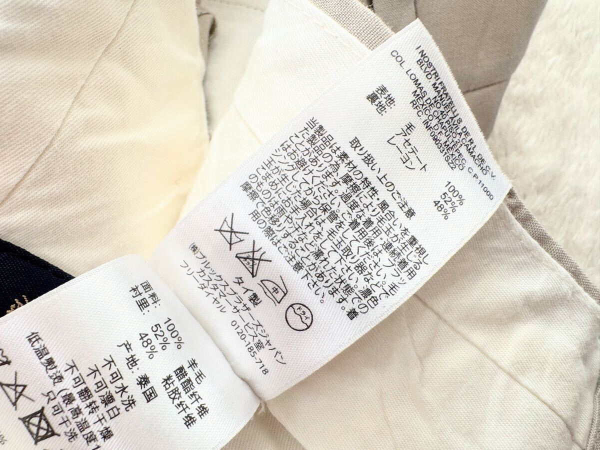 24センチにダブル幅3、5センチとボリュームのある裾幅ですので、ワンクッションのジャスト丈で穿いて頂くとドレープが綺麗でよりシルエット美しく穿いて頂けると思います。