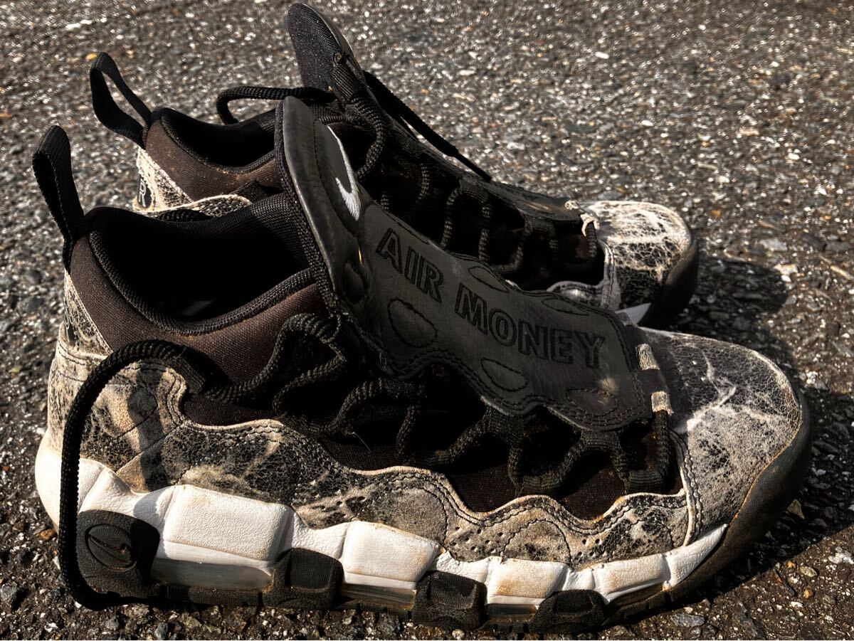 オークション市場でも出回ることが少なくなったレアなNIKE AIR MORE MONEY LXです。元々19,440円で購入したプレミアムスニーカーで、靴カバー2枚が付属しており、保存状態も良好です。お探しだった方にとって絶好の機会です!このチャンスをお見逃しなく!