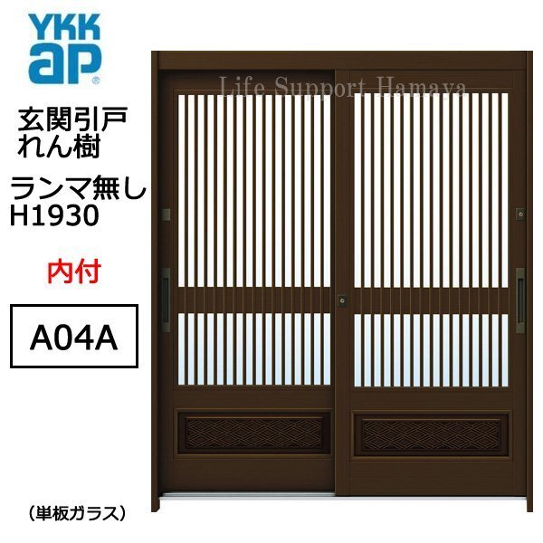 | ■ 商品名 | アルミサッシ 玄関引戸 れん樹 A04A 内付 ランマ無し 単板 |