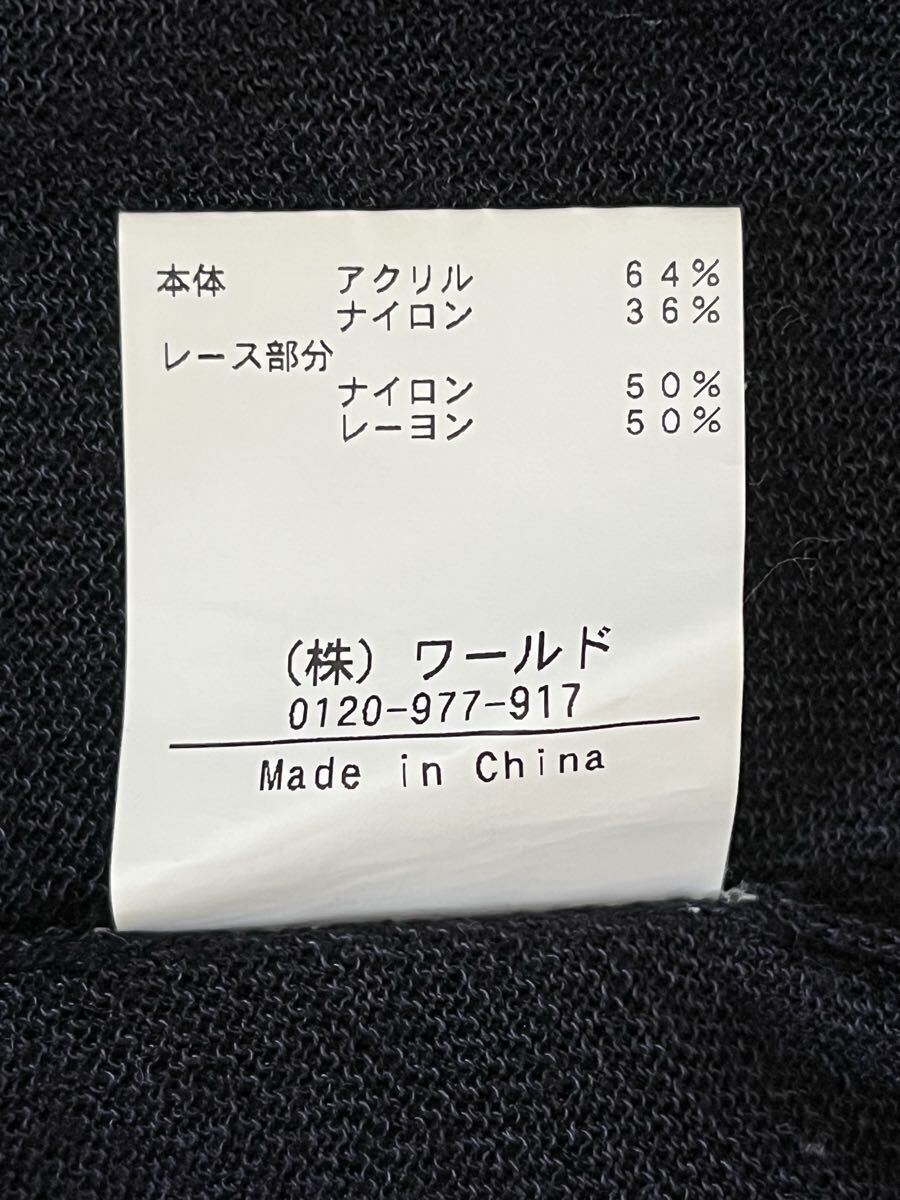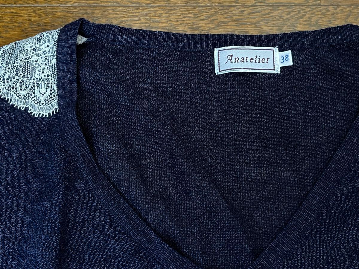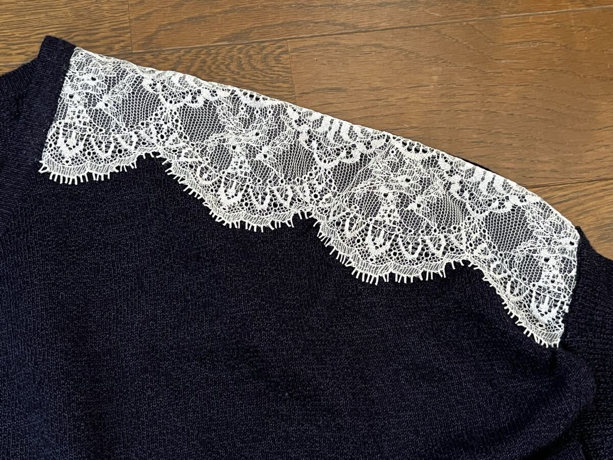 ○肩部分には繊細なレースがほどこされていて上品なニット。