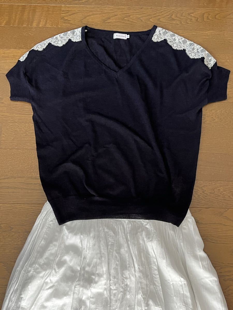 ○アナトリエで購入した紺色の半袖ニット。中古。(スカートは出品していません)