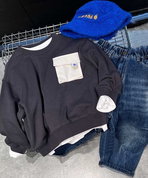 参考商品名:【aimoha-KIDS-】子供服 ビッグシルエット胸元ポケット付け 長袖Tシャツ