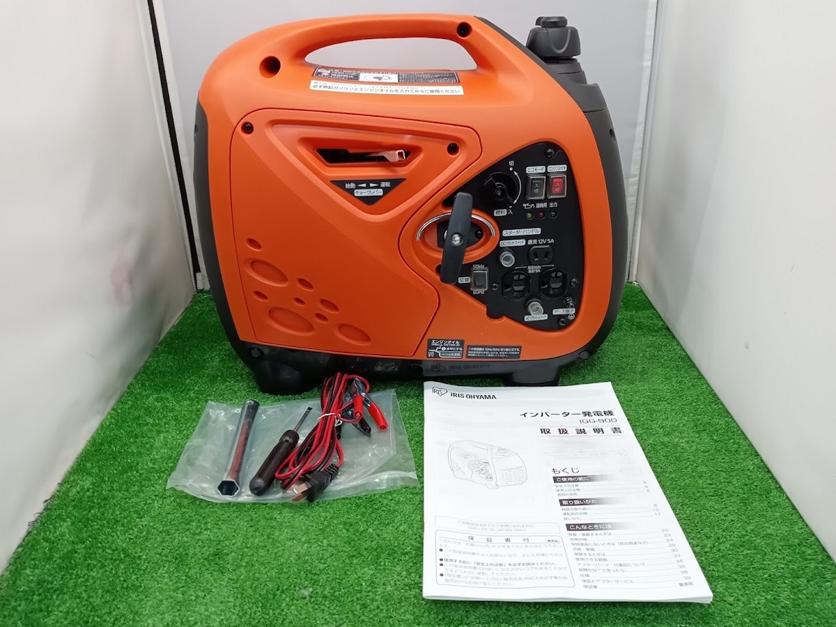 | 【 未使用 長期保管品 アイリスオーヤマ エンジン式 インバーター 発電機 定格出力 0.9kVA 900W IGG-900 】 | ||