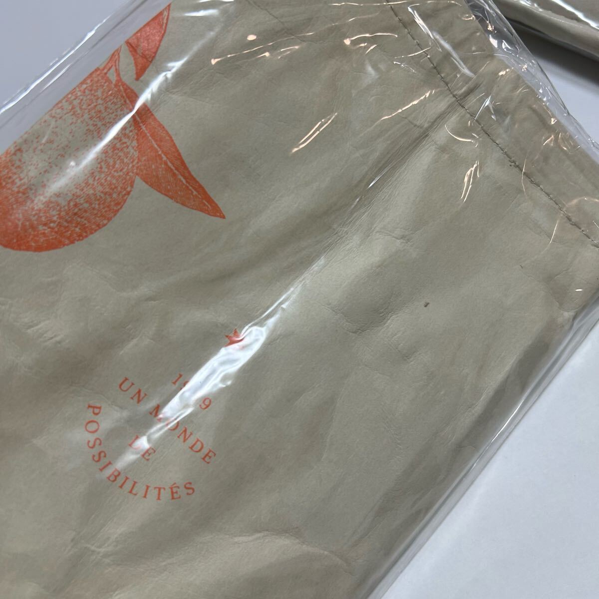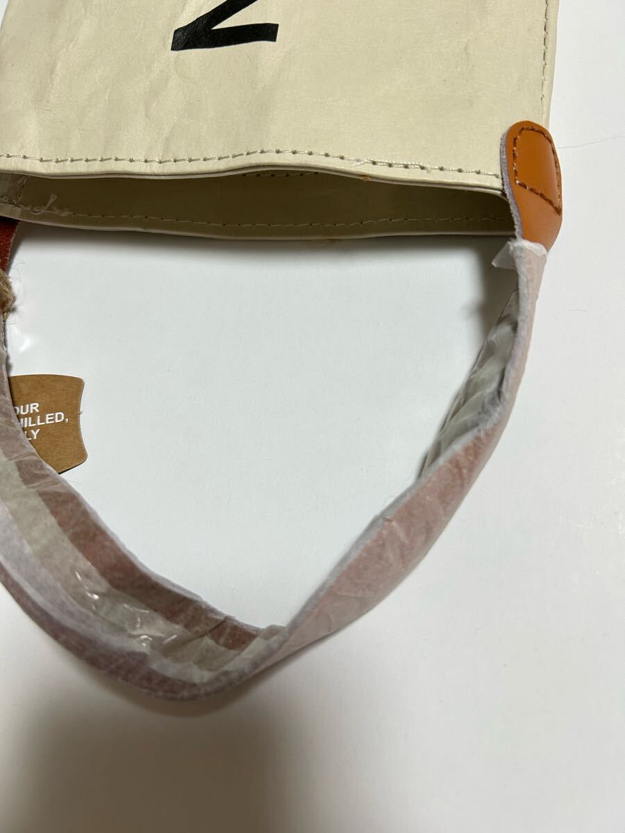 持ち手はレザー、本体は紙、麻、綿でできています。