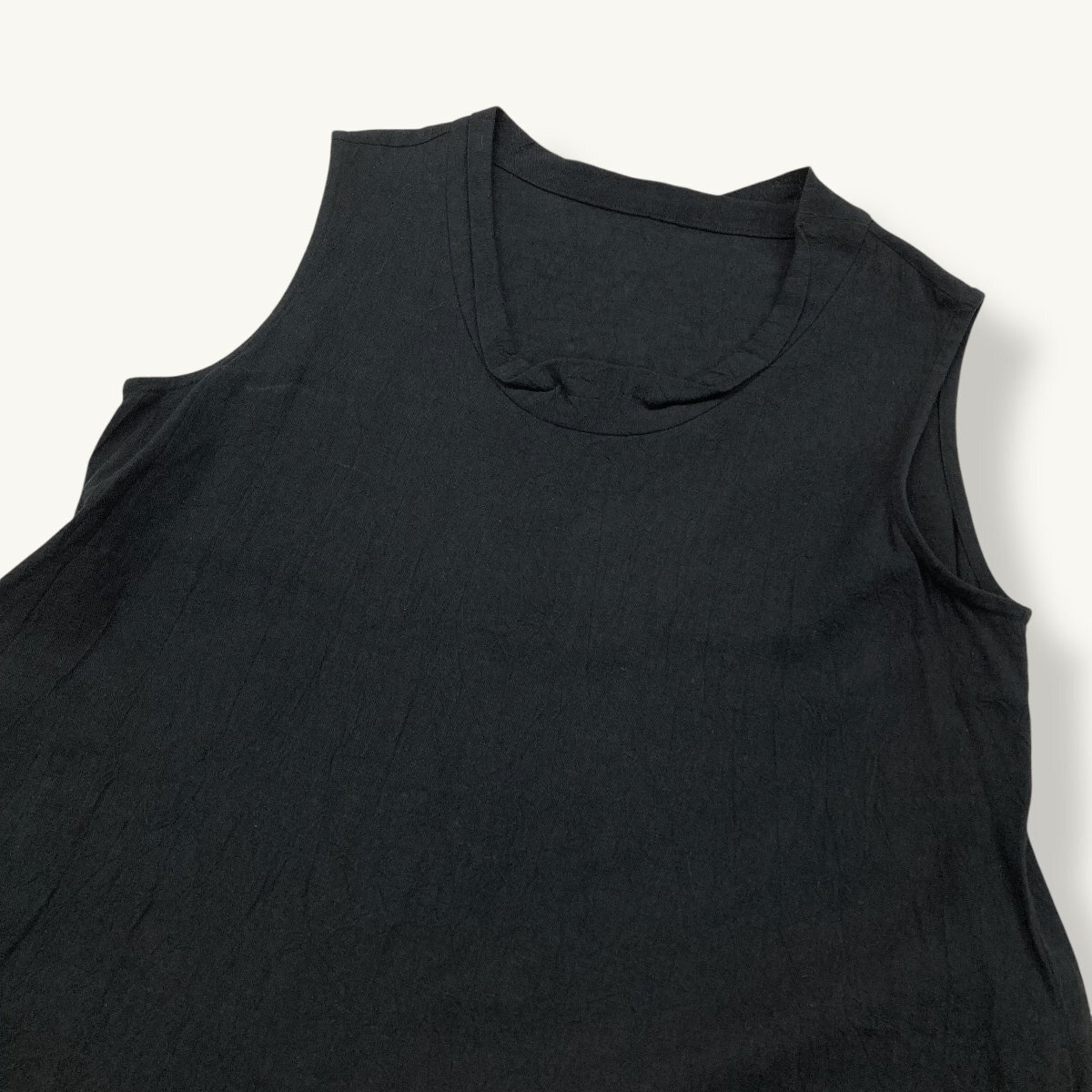 美品 慈雨/センソユニコ シワ加工コットンリネンロングベスト/チュニック 40/黒 sc692