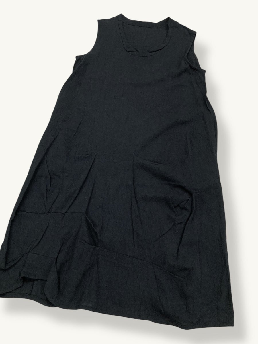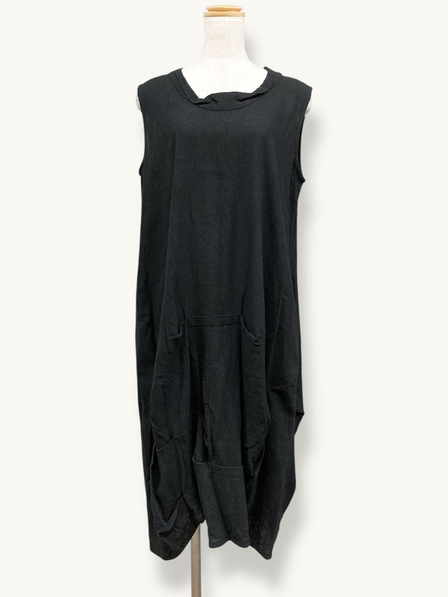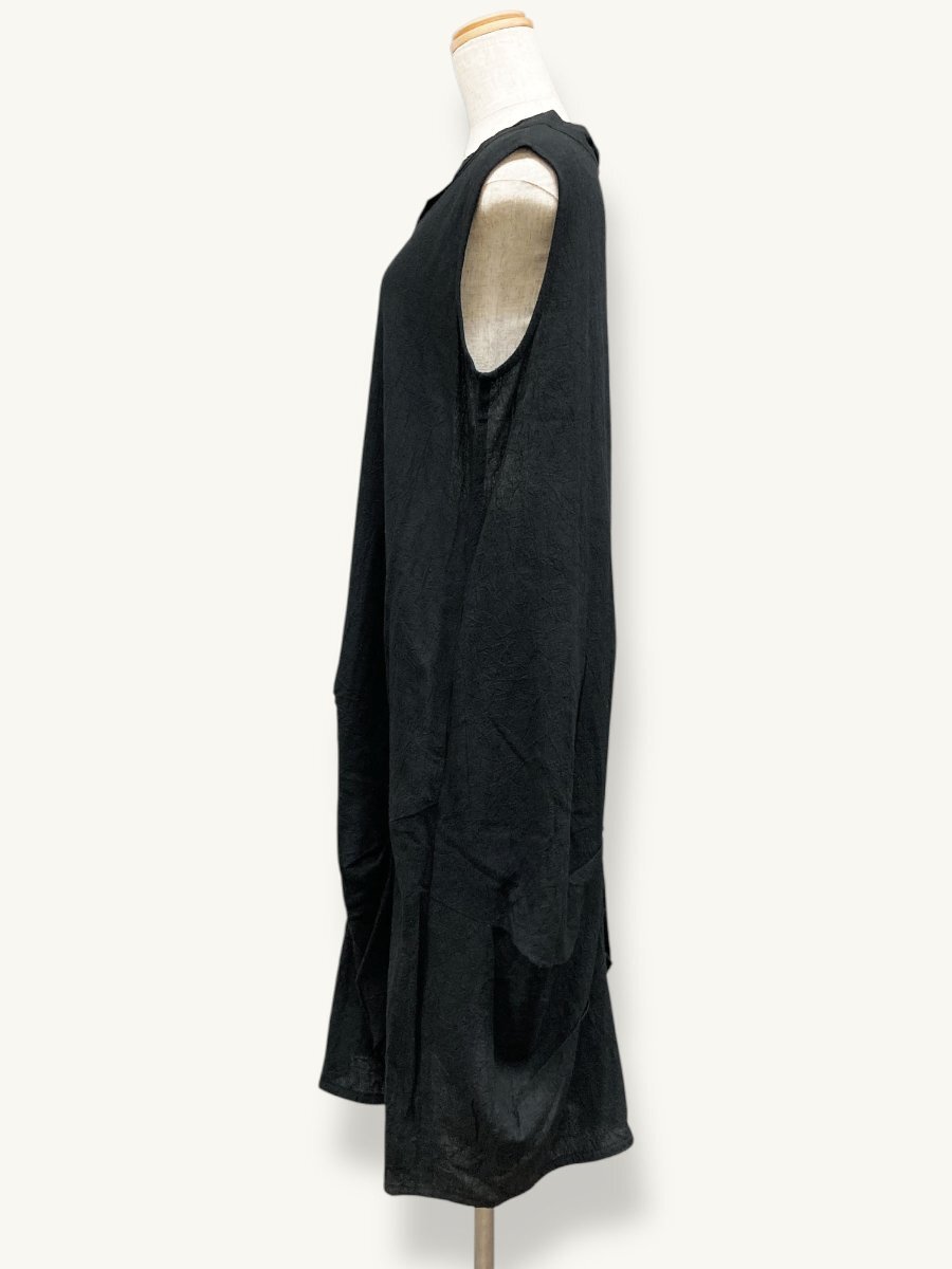 かぶりタイプ/デザインラウンドネック/ノースリーブ/ミディ丈/左右シームポケット/日本製
