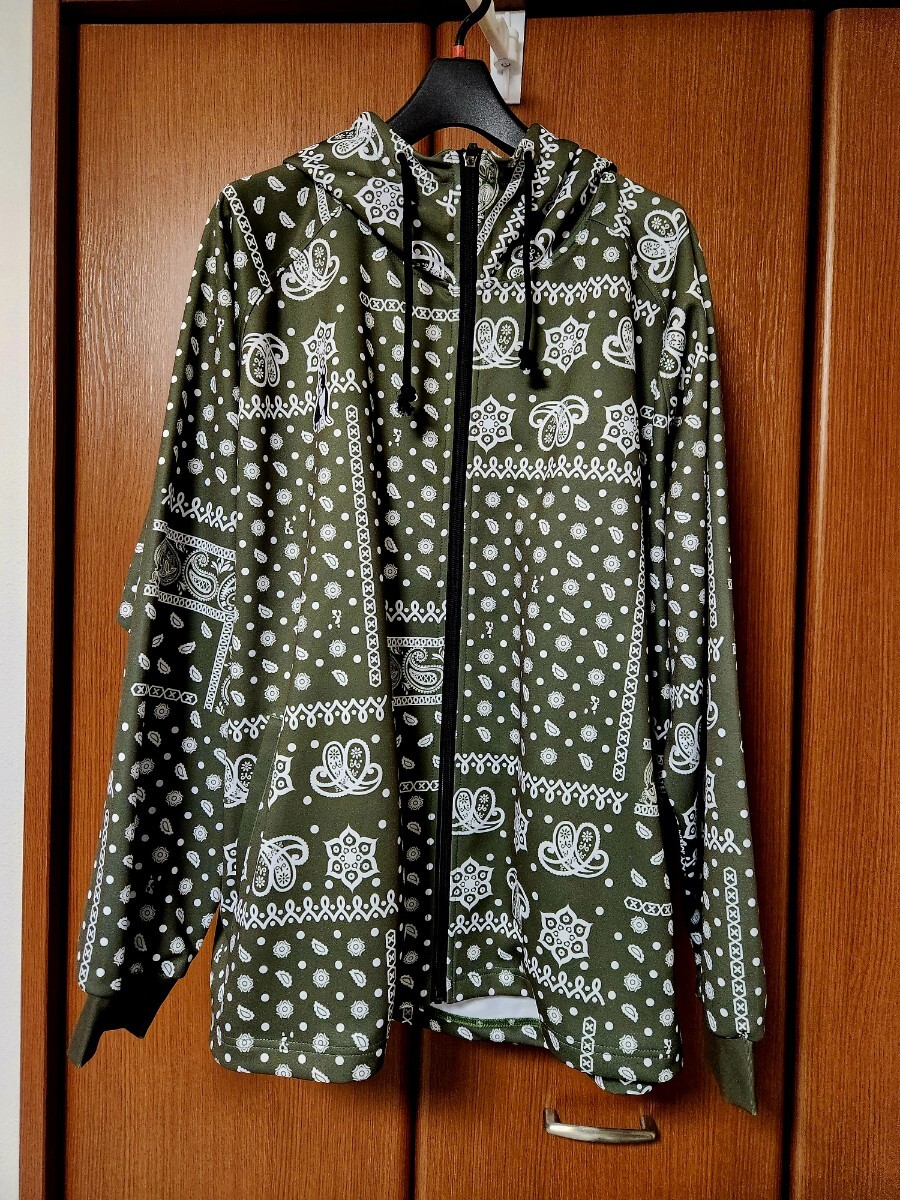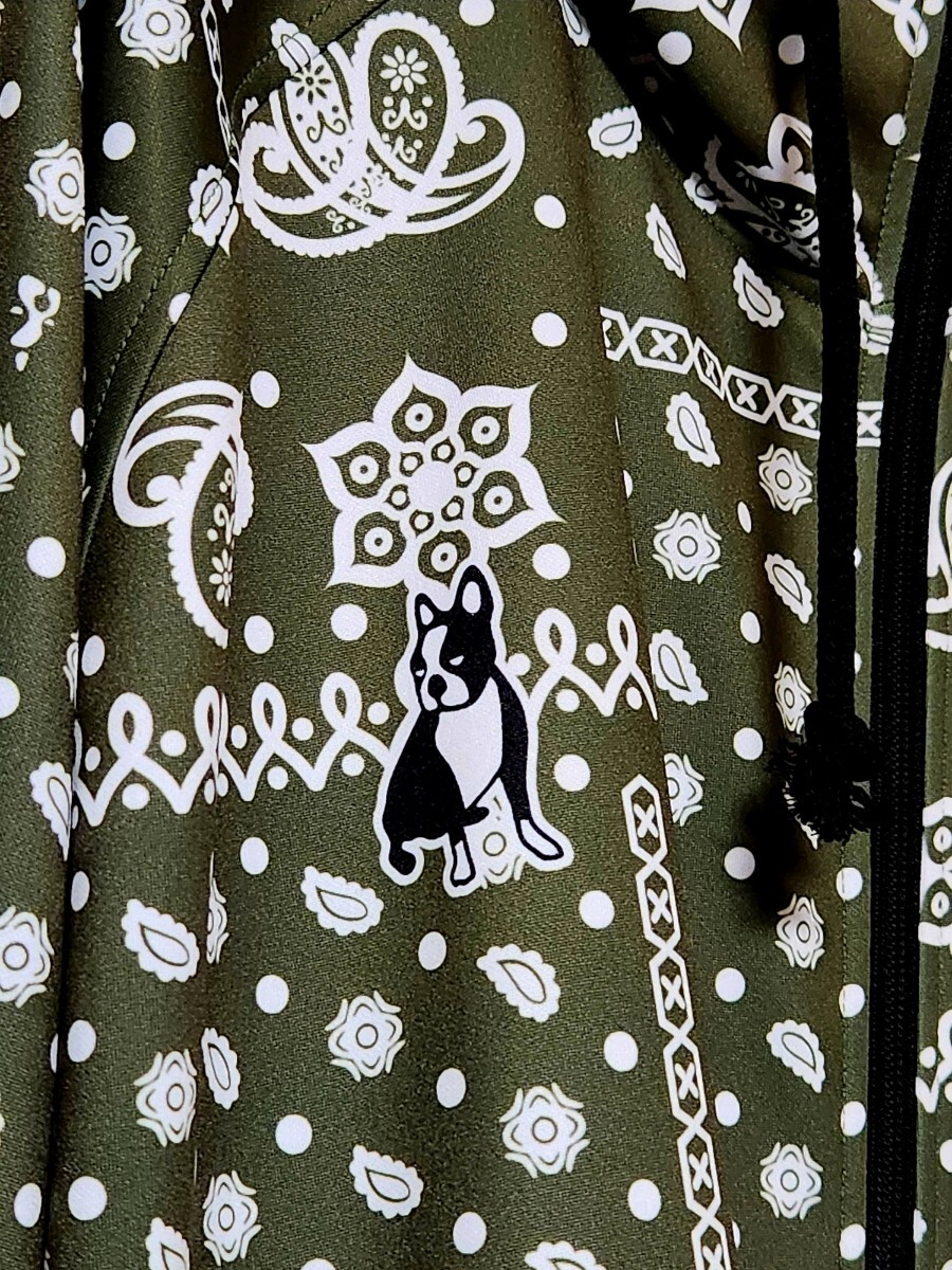 ペイズリーの総柄に背中のサークルロゴが目立つデザインです。