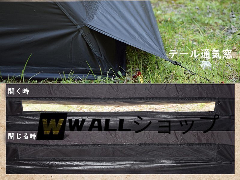 テント 1-2人用 広い前室 ツーリング コンパクト BCポリコットン素材 軽量 通気 簡単設営 キャンプ アウトドア 撥水 マット付き ブラック