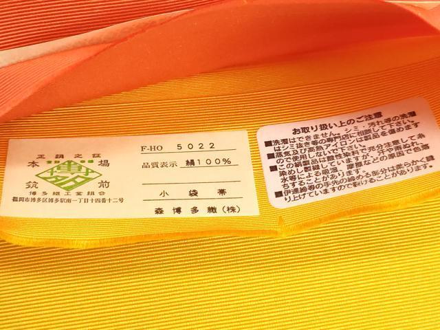 | 【正絹】 詳細に関しましては、画像をご確認ください。 本場筑前博多織は、 福岡県福岡市博多区やその周辺で生産される絹織物です。 仏具のひとつである独鈷、華皿を基にした幾何学模様が織られています。 江戸時代に筑前藩主だった黒田長政が幕府への献上品にしたことから、 博多献上、献上博多とも呼ばれます。 横畝が際立って見える経畝織りという織りになっています。 30〜60本の細い経糸を使うため、こしやはりがあり、 地合が硬く、光沢感があります。 きちんと締まり、くずれにくい、締めやすい帯といわれています。 大変上質な逸品になります。 お安く出品致しますので、是非この機会にいかがでしょうか?