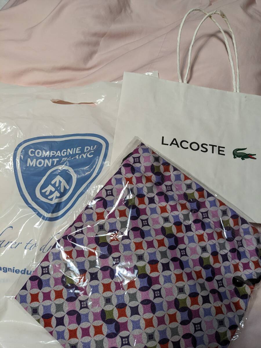 ラコステのトートバッグ、紺色です。ハンドルを含まないサイズは、おおよそ高さ約35㎝・幅41㎝・奥行き21㎝の比較的大容量です。コロナ前にスイスに行った際に購入したと記憶しまして、購入以来整理棚に保管しておりました。 巾着袋と紙袋はおまけにて。紙袋のハンドルは、スレがあり、ややくたびれていることはご容赦ください。
