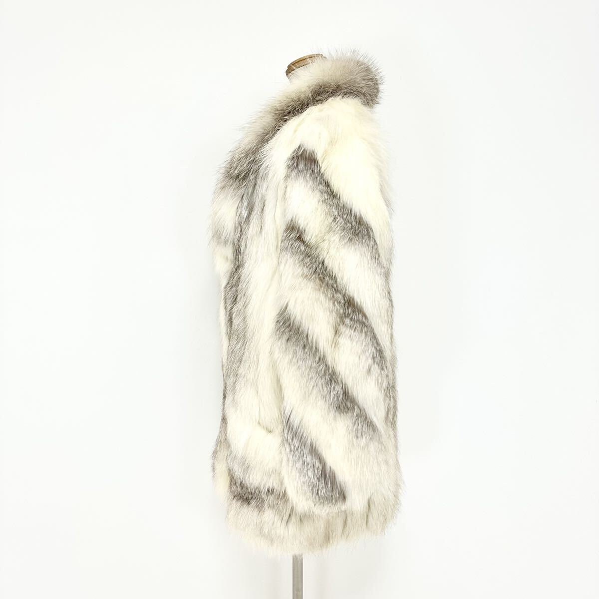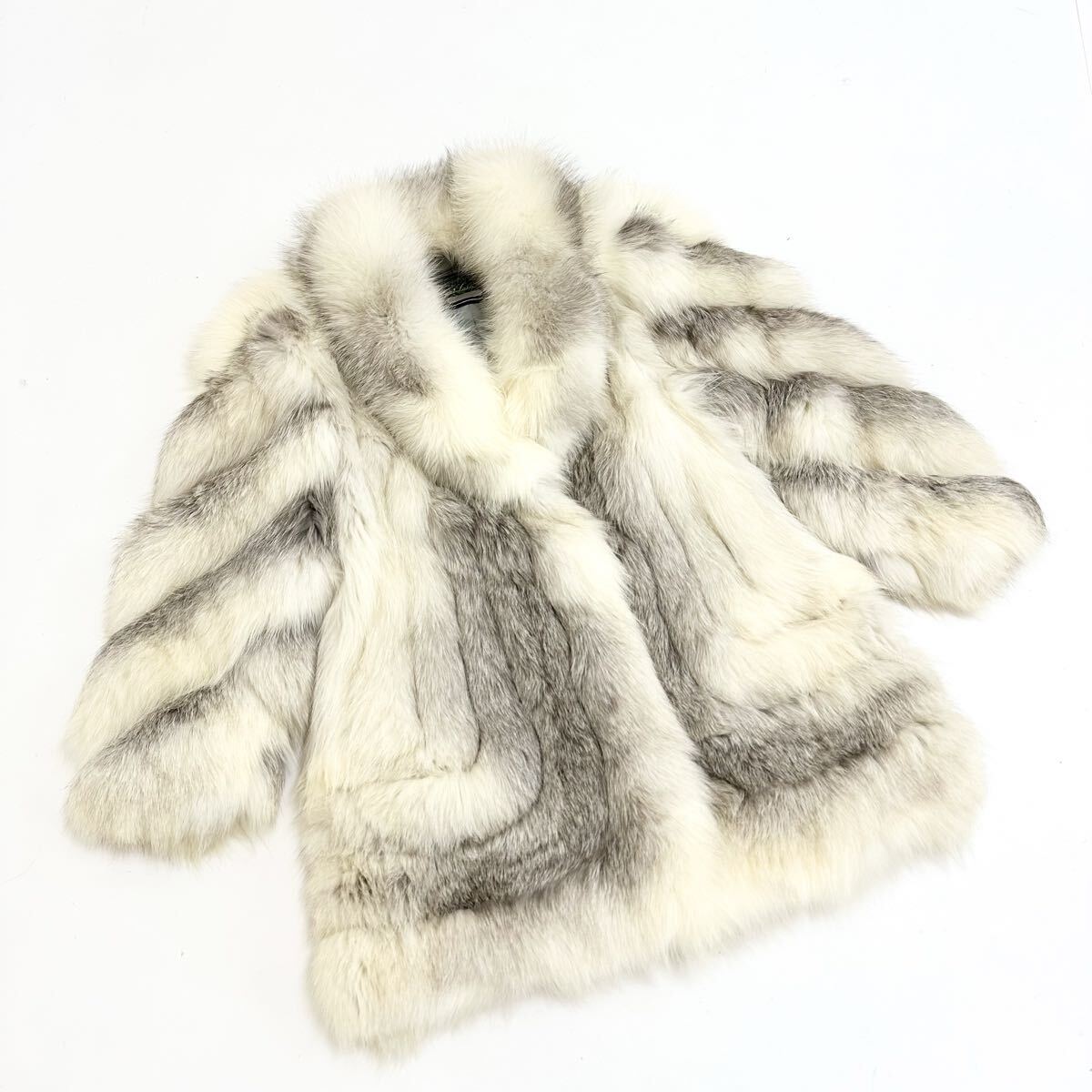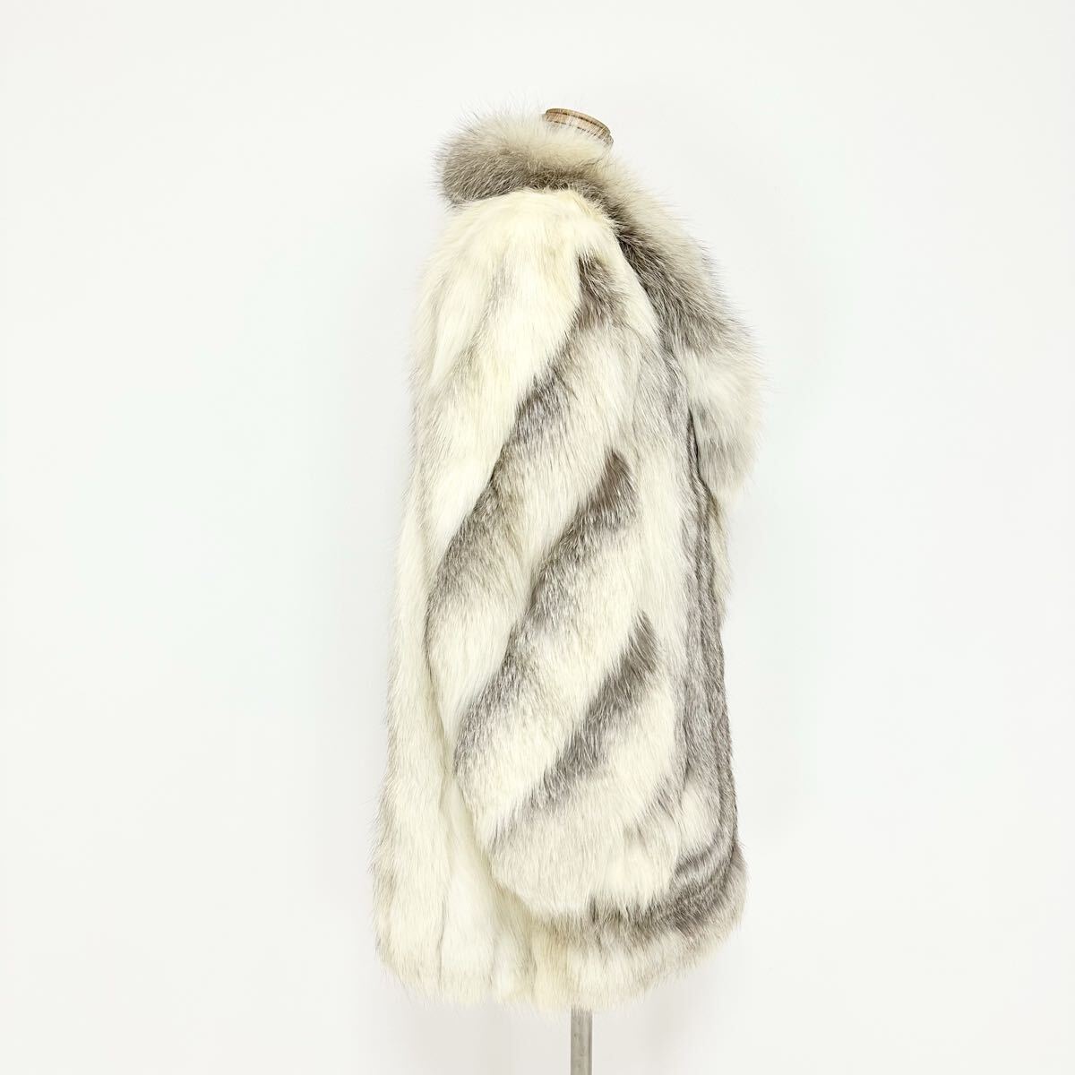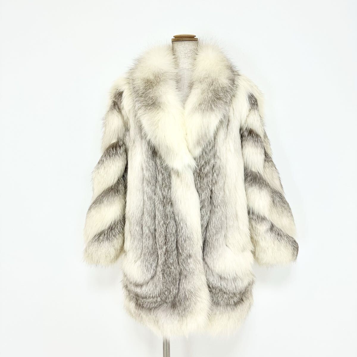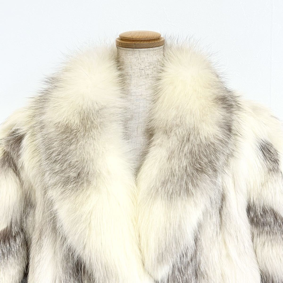 【貂商】 h5911 フォックス デザインコート フォックスコート 袖太 ボリューム◯プラチナフォックス セミロング 狐皮FOX fox身丈約80cm