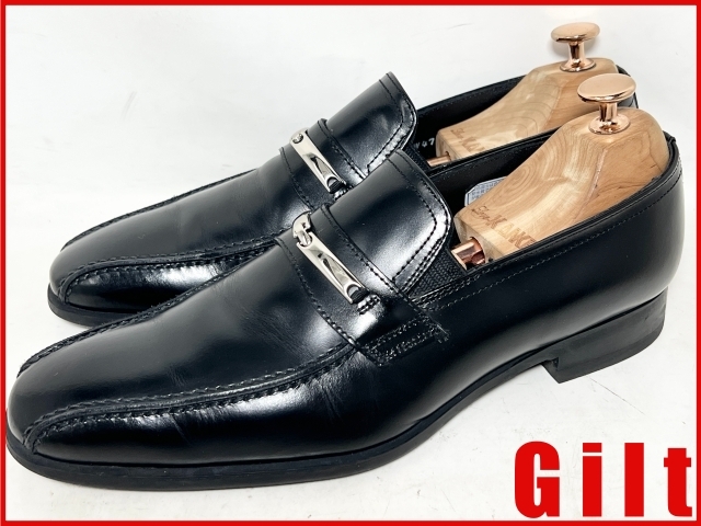 即決★良品 日本製 REGAL★24.5cm レザービットローファー リーガル 黒 ブラック スリッポン シューズ ドレス 本革 革靴
